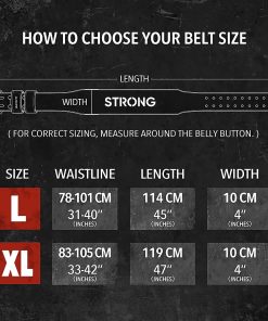 Para garantizar un ajuste seguro durante el entrenamiento, nuestro cinturón de levantamiento de pesas OHMY FIT presenta tallas tanto L como XL para atender a diferentes tipos de cuerpos. El cinturón grande es ideal para cinturas de 31-40″ y mide 45″ de largo con un ancho de 4″. Por otro lado, el tamaño extra grande se adapta cómodamente a cinturas de 33-42″, extendiéndose a una longitud de 47″ con el mismo ancho de 4″, asegurando opciones variadas para los entusiastas del levantamiento de pesas.