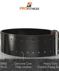 Nunca hagas sentadillas, peso muerto o busques grandes metas de powerlifting sin antes ponerte un cinturón de entrenamiento de cuero genuino para el soporte. No importa si eres un campeón dos veces o un tipo que entra al gimnasio por primera vez en tu vida, apoyar tu espalda baja es esencial para tu fuerza en el core y tu capacidad para mantener la salud física. Por eso necesitas un Cinturón de Levantamiento de Peso de Cuero Genuino de ProFitness. Ganancias de fuerza de servicio pesado Hecho de cuero de primera calidad, nuestro cinturón de entrenamiento no se estirará, rasgará o deslizará mientras haces ejercicio; no importa cuánto peso levantes. De hecho, este cinturón de fitness de servicio pesado cuenta con una hebilla de rodillo de doble clavija ajustable para permanecer en su lugar mientras te inclinas, levantas, haces sentadillas y te esfuerzas. Mejor aún, te ayuda a mantener una forma y equilibrio adecuados para que never pierdas de vista tus metas debido a una lesión. Detalles del producto: Cuero genuino Ajuste ajustable y antideslizante Resistente al estiramiento y a las roturas Hebilla de metal de servicio pesado Unisex (hombres y mujeres) Ancho mejorado: 4 Garantía de por vida Haz clic en ‘Agregar al carrito’ ahora y disfruta de un cinturón de entrenamiento de cuero genuino para mejorar el soporte lumbar y la espalda baja mientras haces sentadillas, levantas y haces ejercicio.