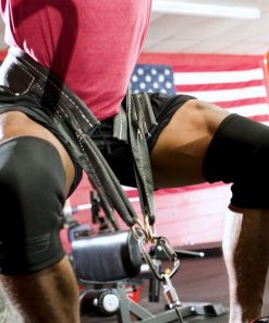 Entrena la parte inferior de tu cuerpo sin cargar mucho peso en tu columna vertebral; El cinturón mide 54 pulgadas de largo (57 pulgadas incluyendo los anillos) y tiene un grosor de 6 pulgadas.; Usando una cadena y ganchos de resorte (no incluidos), carga el cinturón con placas de peso, pesas rusas, etc.; Si tienes dos bancos de altura igual, puedes usarlos. Simplemente sujeta un par de placas de 45 libras al cinturón, sube a los bancos y comienza a hacer sentadillas.; Este cinturón está diseñado para resistir décadas de uso y abuso.