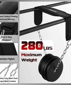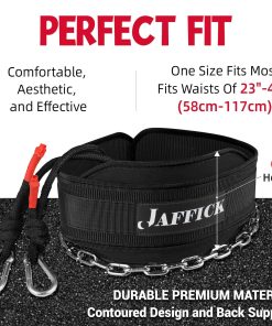 El cinturón de inmersión Jaffick cuenta con hebillas en D más gruesas y grandes, hebillas de escalada, cadena de acero de 39″ de alta resistencia y cuerda de escalada de 41″ resistente y ligera. Obtenga el ajuste y soporte que necesita de su cinturón de inmersión con nuestro diseño contorneado y soporte trasero suave. El cinturón de inmersión Jaffick está hecho de nailon premium para mayor durabilidad. Con sistema de soporte de peso super resistente con material de cuerda de escalada. Desde la practicidad del producto, es más ligero y fácil de transportar. MECANISMO DE CADENA DE ACERO Y MOSQUETÓN le permiten agregar fácilmente peso para dominadas y dips, alcanzando su peso ideal mientras garantiza la seguridad. Puede soportar hasta 350 LBS. Nuestro cinturón de inmersión puede ayudar a aumentar sus tríceps, pecho, lats y bíceps. Este cinturón de inmersión está diseñado para ser utilizado en ejercicios de peso corporal como dips con peso, chin-ups, pull-ups y sentadillas con cinturón de cadera. Talla única que se adapta a la mayoría de las cinturas de 23″-46″ (58cm-117cm), por favor, mida su cintura para un mejor ajuste. Este cinturón lo ayuda a establecer estímulos adicionales, desarrollar su resistencia y volverse más fuerte para alcanzar metas de entrenamiento adicionales.
