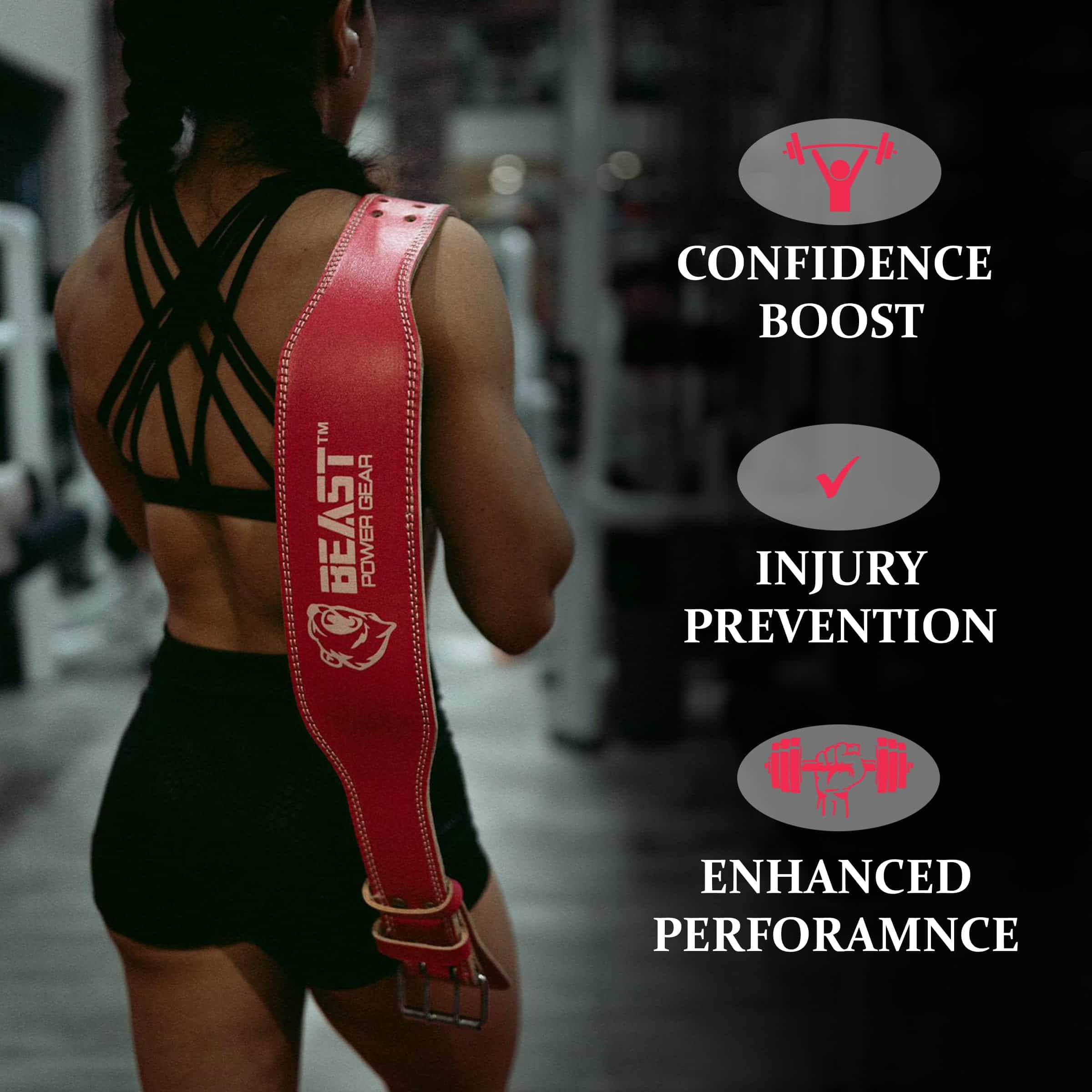 4. Protección de la Parte Baja de la Espalda: Reduce el riesgo de lesiones, especialmente durante sentadillas pesadas, levantamientos muertos y prensas por encima de la cabeza.
