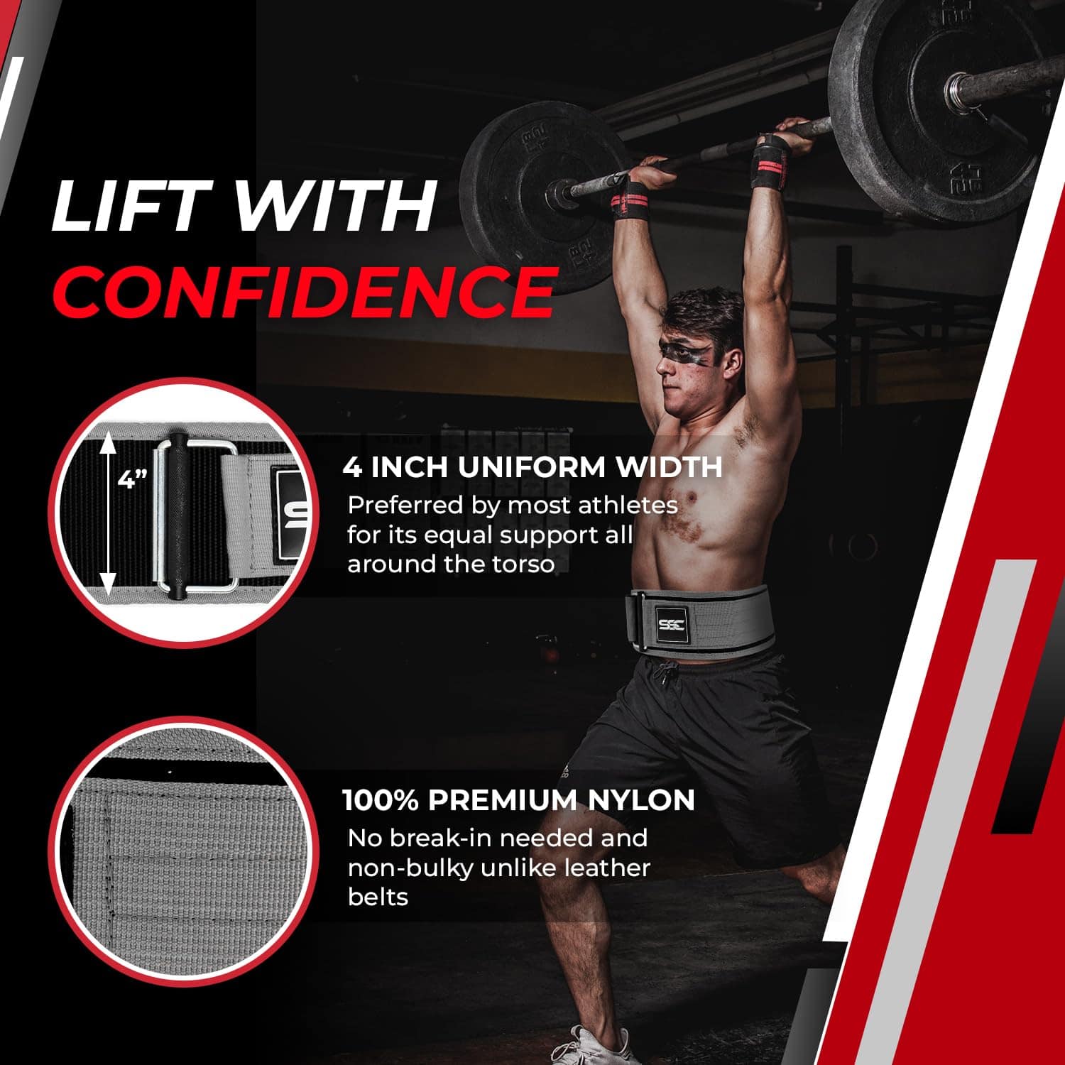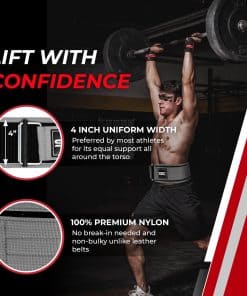 3. Ancho de 4 Pulgadas Hecho con Nylon de Alta Calidad – Experimenta la combinación perfecta de fuerza y comodidad con nuestro cinturón de levantamiento de pesas de 4 pulgadas, fabricado en un 100% de nylon de alta calidad. Este cinturón está diseñado para soportar los entrenamientos más duros, ofreciendo un soporte y durabilidad sin compromisos. El ancho del cinturón proporciona una estabilidad máxima en el núcleo, permitiéndote levantar mejor con confianza.