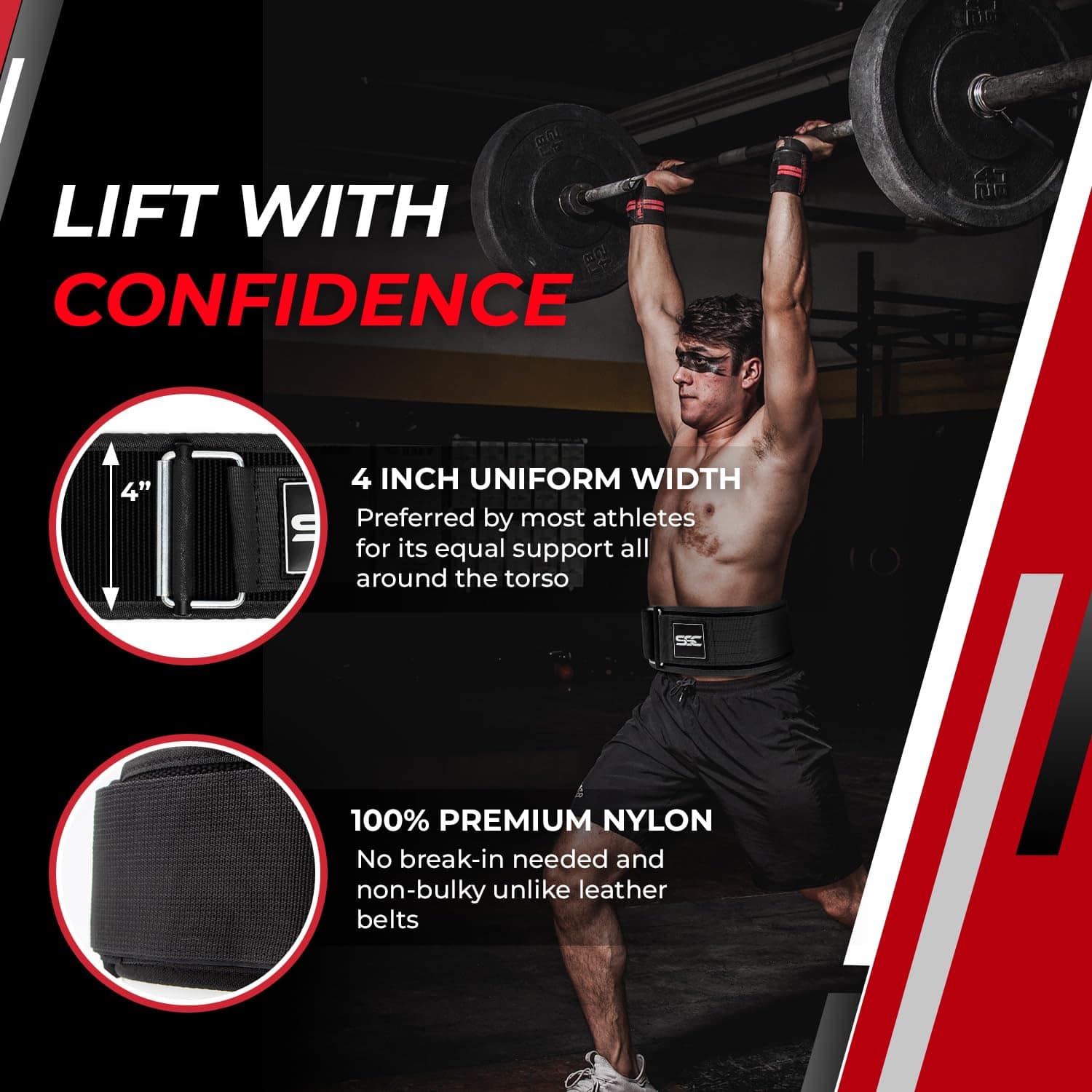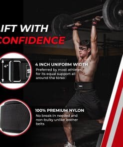 3. Ancho de 4 pulgadas hecho con nylon de alta calidad – Experimenta la combinación perfecta de resistencia y comodidad con nuestro cinturón de levantamiento de pesas de 4 pulgadas, construido con un 100% de nylon de alta calidad. Este cinturón está diseñado para resistir los entrenamientos más duros, ofreciendo un soporte y durabilidad inquebrantables. El ancho del cinturón proporciona una estabilidad central máxima, permitiéndote levantar con confianza.