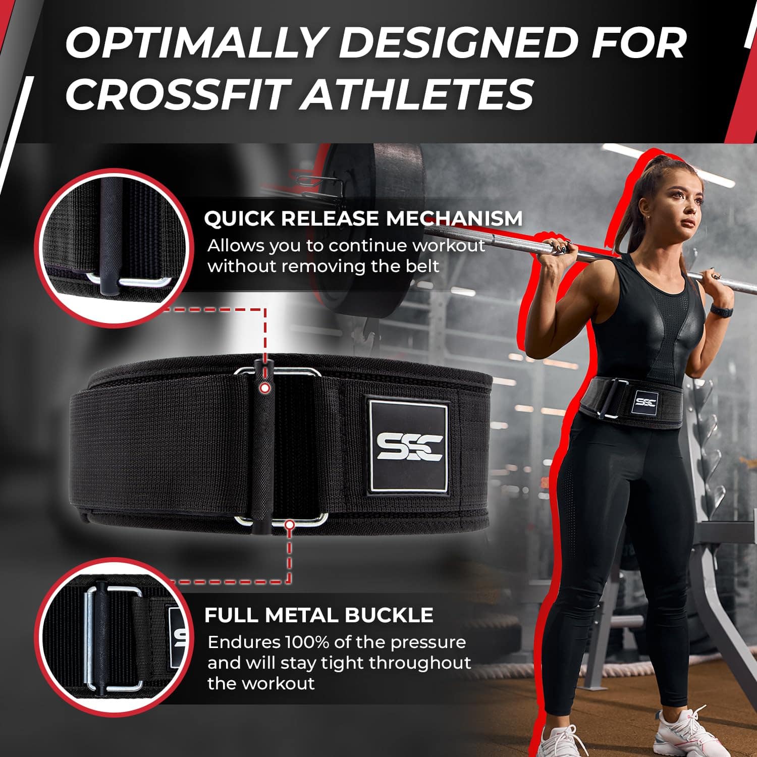 1. Sistema de doble bloqueo – ¡No más preocupaciones por que tu cinturón se deslice o se vuelva a ajustar! Obtén ese soporte y seguridad incomparables durante tus sesiones de levantamiento de pesas con el avanzado Sistema de Bloqueo Automático de este cinturón de levantamiento de pesas. Experimenta la máxima estabilidad y confianza al empujar tus límites y alcanzar nuevas alturas.