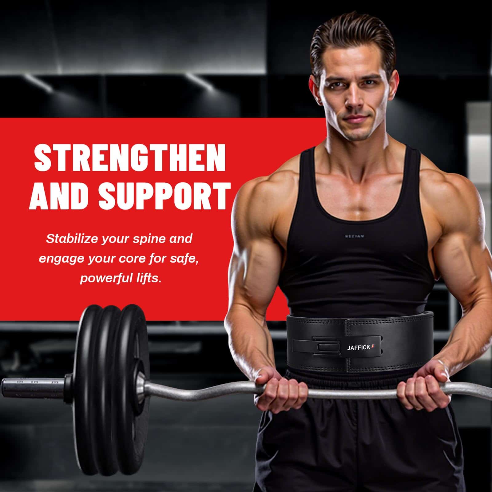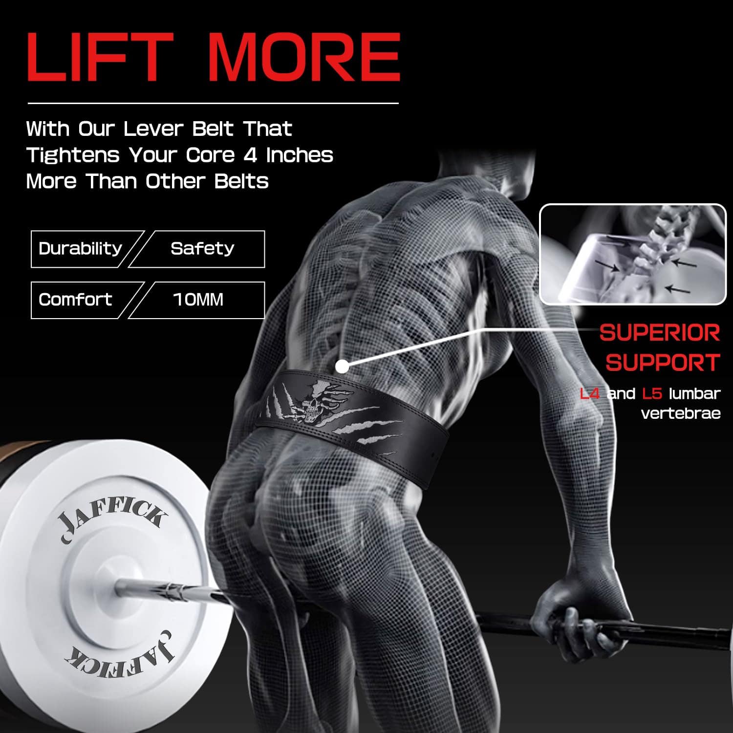 Cinturón de Levantamiento de Pesas Jaffick – Power 10mm de Cuero Genuino Extremadamente Resistente para Soporte de Espalda Baja en Sentadillas, Press de Banca, Levantamiento de Pesas Muertos, Culturismo, Levantamiento de Pesas para Hombres y Mujeres