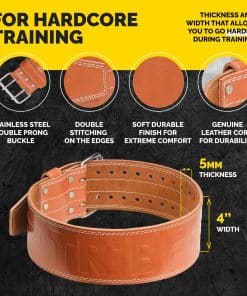 3. COMBINACIÓN DE FUERZA Y DURABILIDAD: Hecho de cuero genuino de 2 capas y sellado con una hebilla robusta de 2 púas, es el último respaldo de levantamiento de peso. Con el logotipo debossed de TRIBE, no solo estás usando un cinturón; estás usando una insignia de calidad.