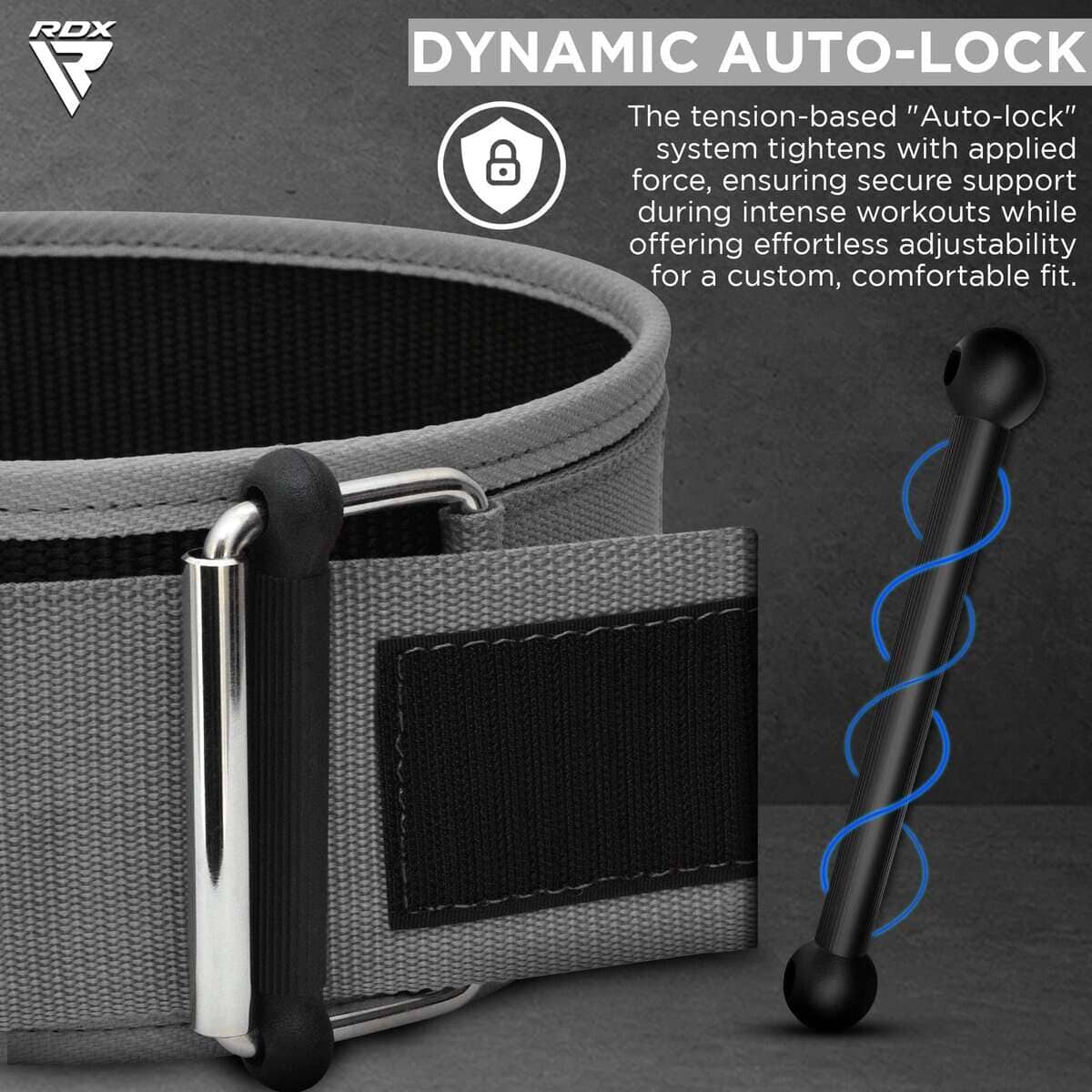 1. SISTEMA DE CIERRE AUTOMÁTICO INNOVADOR ¿Harto de cinturones que se abren durante levantamientos pesados? Nuestro sistema de cierre automático innovador combinado con la correa de gancho y bucle larga se asegura de que su cinturón no se abra ni siquiera en los entrenamientos más difíciles. Sí, no se moverá de su lugar. El cinturón de entrenamiento RX1 para levantamiento de pesas tiene una hebilla de rodillo resistente que utiliza una tecnología basada en la tensión que no permite que el cinturón ni la correa se abran accidentalmente durante los entrenamientos y sesiones de entrenamiento.