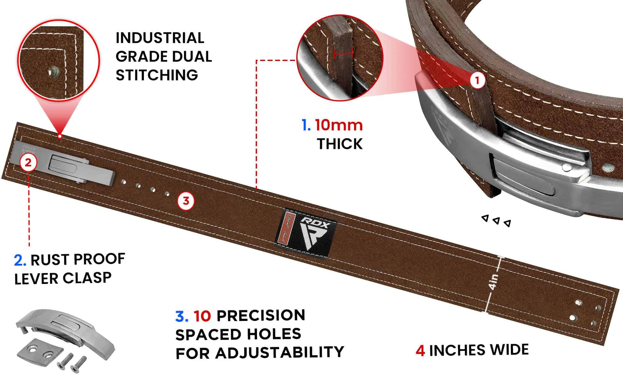 CONSTRUCCIÓN DE ALTA CALIDAD: Sin compromisos en calidad. El cinturón con hebilla de palanca, cumpliendo con los estándares de IPL y USPA, presume de una construcción premium de cuero de gamuza que asegura que el cinturón se mantenga impecable y duradero. El forro actúa como una almohadilla acolchada que refuerza la espalda, brinda comodidad y evita que el cinturón de levantamiento de muertos se clave en la piel. La costura de alta calidad lo hace excepcionalmente duradero y resistente al desgaste.