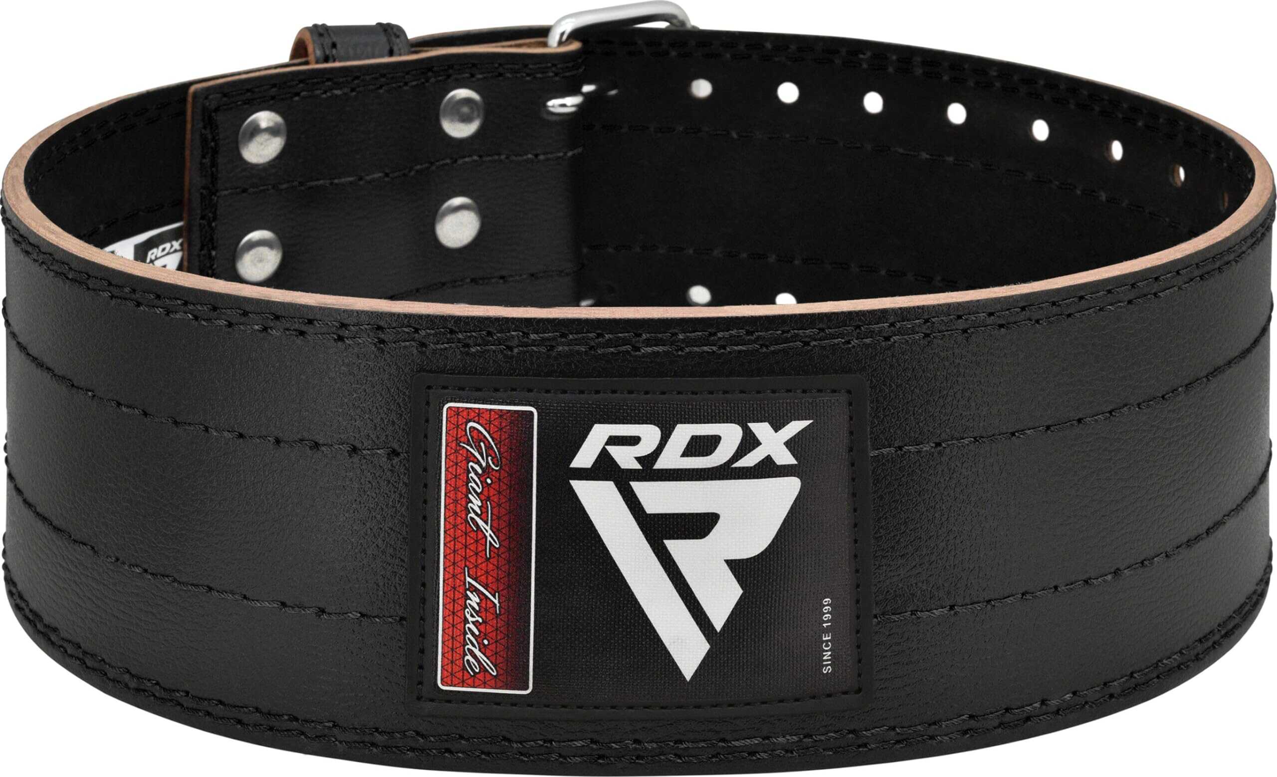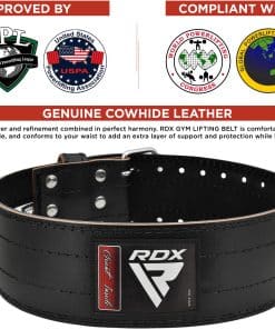 4. AJUSTABILIDAD PERSONALIZADA Lo tenemos todo cubierto. El cinturón de levantamiento RDX RD1 tiene una hebilla de rodillo de doble punta que se puede ajustar en cualquiera de los 12 agujeros perforados con precisión para un ajuste óptimo del cinturón de levantamiento de pesas del gimnasio. Los remaches reforzados trabajan en conjunto con la hebilla de rodillo para maximizar el soporte y la solapa de cuero suave evita que el cinturón entre en contacto con el cuerpo del usuario.