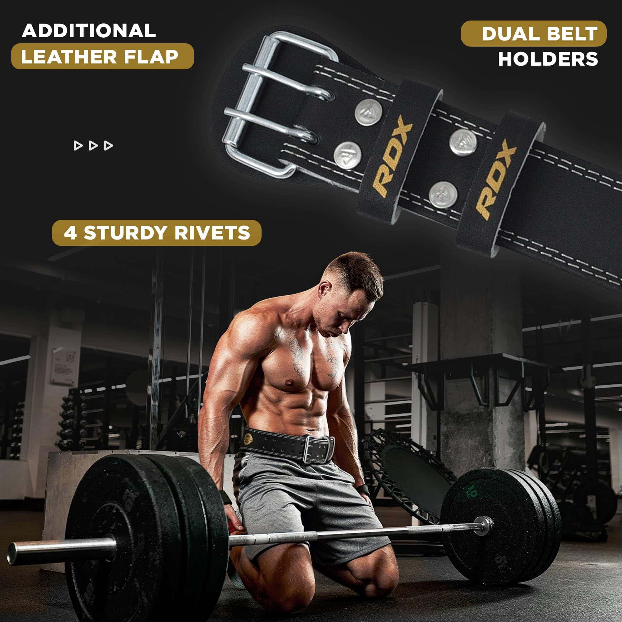 AJUSTABILIDAD MEJORADA La hebilla de doble púa se puede ajustar en cualquiera de los 10 agujeros perforados con precisión para el ajuste óptimo del cinturón de entrenamiento de gimnasio, mientras que la solapa de cuero adicional evita el contacto directo de la hebilla con el cuerpo para minimizar la incomodidad.