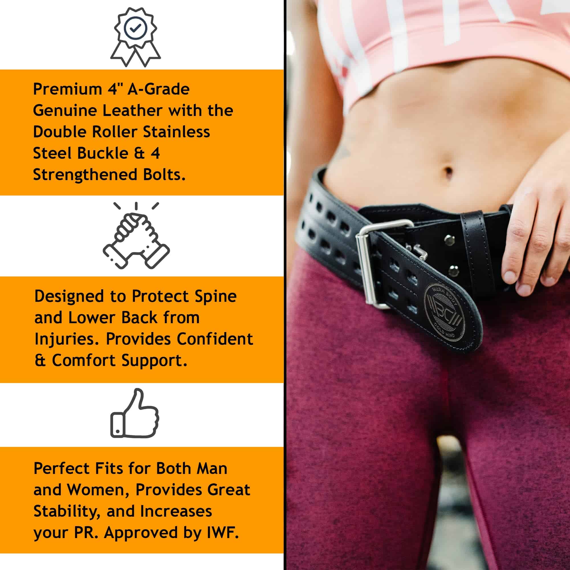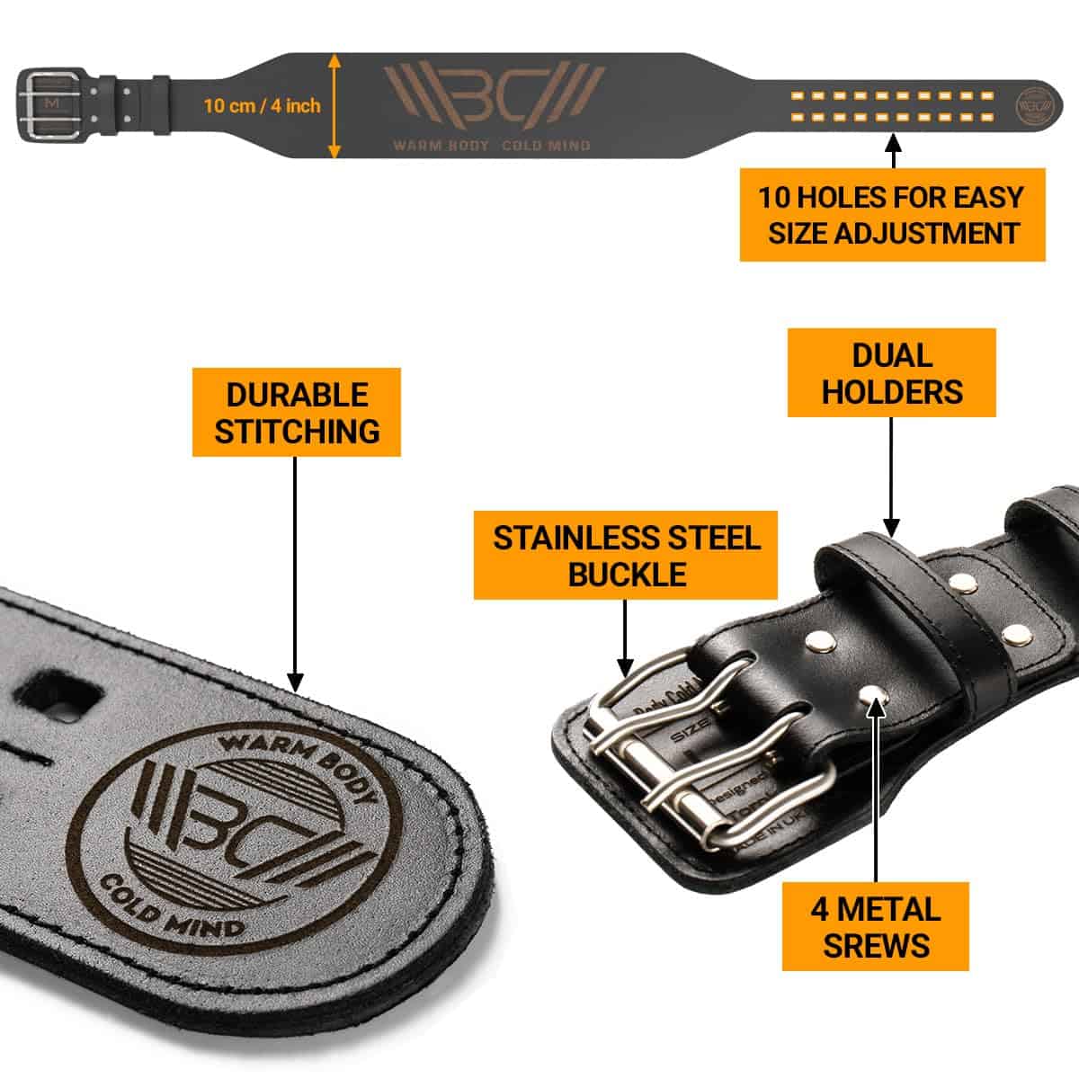 Cinturón de levantamiento de pesas WARM BODY COLD MIND 4″ – 100% Cuero – Aprobado para Levantamiento Olímpico de Pesas, Soporte para Cintura/Espalda para Hombres y Mujeres, Powerlifting Gimnasio Levantamiento de Pesas Culturismo Entrenamiento Cruzado/Fuerza Squat