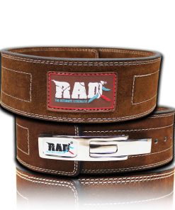 Lifting belt para powerlifting y weightlifting fabricado con cuero de alta calidad diseñado para brindar máximo soporte durante levantamientos pesados como sentadillas y peso muerto.