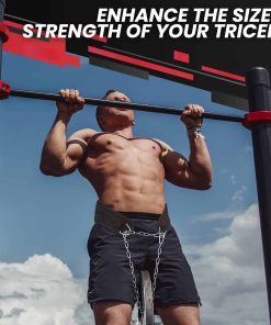 2. Construye una Físico Impresionante: Ya sea que estés esculpiendo un V-taper, fortaleciendo tu parte superior del cuerpo o enfocándote en el tamaño y fuerza de tus tríceps, nuestro cinturón de pesas con cadena está diseñado pensando en ti. Ofrece un diseño versátil para mejorar tus entrenamientos.