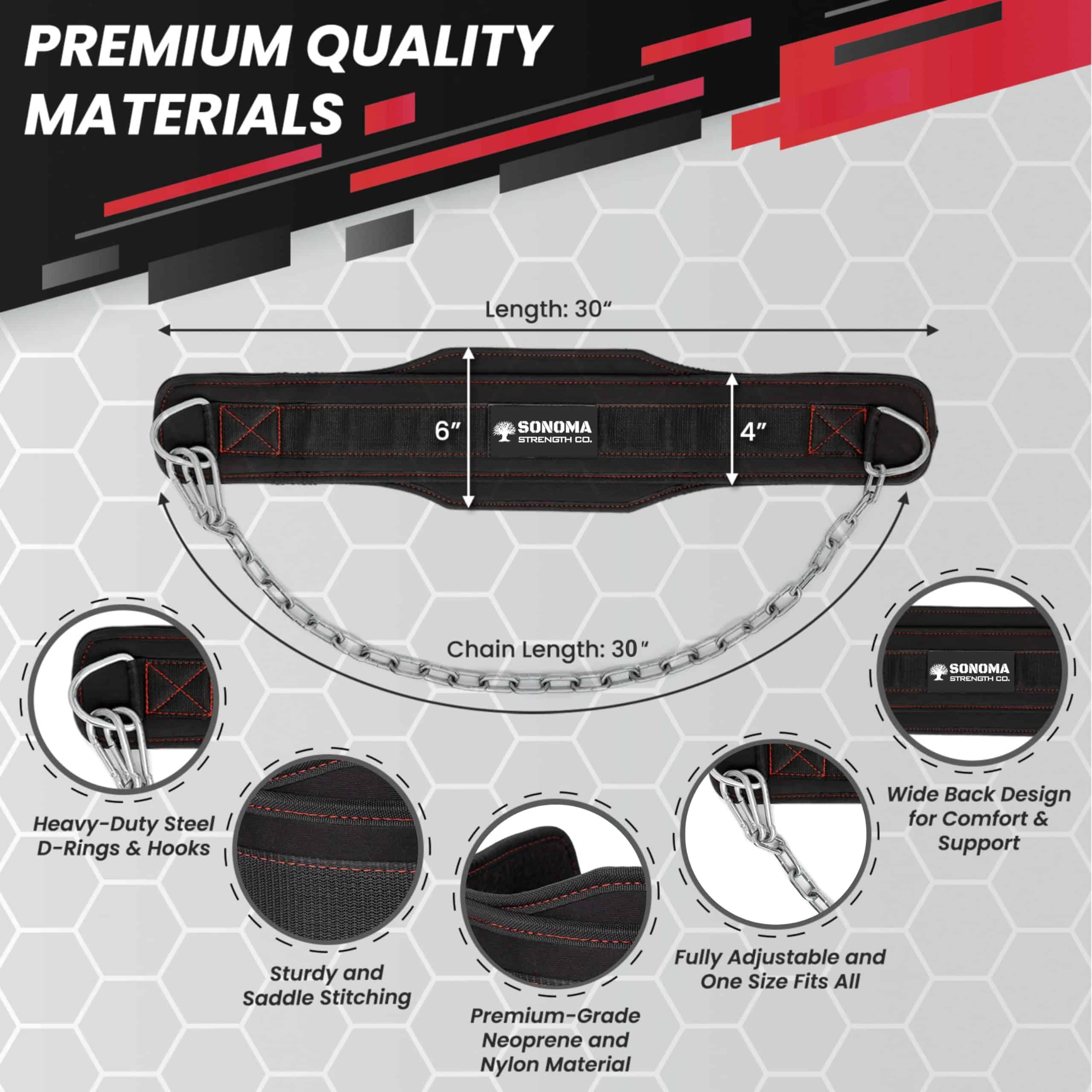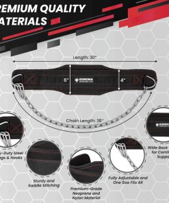 1. Diseño Innovador: El Cinturón de Pesas de Sonoma Strength Co. para levantamiento de pesas cuenta con un diseño funcional, que incluye una cadena de 30″, una espalda ancha de 6″ hecha de nylon premium y ajustabilidad completa con 2 mosquetones. Eleva tu experiencia de levantamiento de pesas ahora.