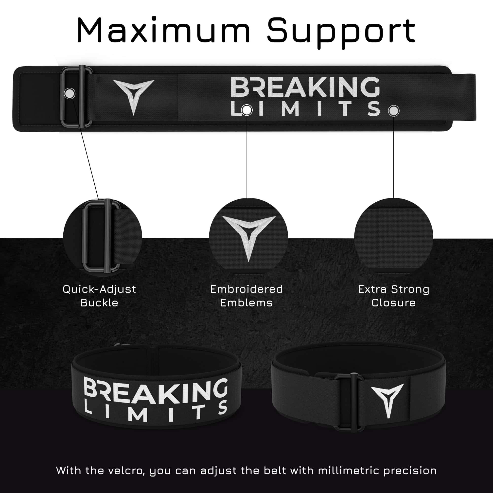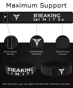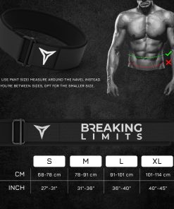 Cinturón de Peso Breaking Limits para Hombres – Cinturones para Hombre Gimnasio – Cinturón de Levantamiento de Pesas – Cinturón de Levantamiento de Pesas para Mujeres – Cinturón de Gimnasio para Powerlifting, Levantamiento de Pesas, Deadlifts, Cross Training (L) – COMBINA ESTILO Y FUNCIÓN: Con dos logotipos bordados y una hebilla completamente negra, nuestro cinturón de levantamiento de pesas es una elección destacada para los levantadores de pesas que valoran tanto el rendimiento como la estética. POTENCIA TU RENDIMIENTO: Ideal para cross training, levantamiento de pesas y powerlifting, este cinturón de gimnasio ofrece un soporte esencial, ayudando a proteger contra lesiones durante entrenamientos de fitness intensos. AJUSTE AJUSTADO Y SEGURO: Equipado con una hebilla de auto-bloqueo, nuestros cinturones de levantamiento de pesas se mantienen ajustados durante tus levantamientos más pesados. Concéntrate en tu rendimiento sin preocuparte por ajustes a mitad del levantamiento. LISTO PARA EL EJERCICIO INTENSO: Hecho de nailon premium con bordes suaves, nuestros cinturones de levantamiento de pesas para cross training son duraderos y flexibles, proporcionando el equilibrio perfecto entre soporte y comodidad. AJUSTES SIN ESFUERZO: La función de liberación rápida de nuestro cinturón para levantamiento de pesas permite una fácil remoción. Con su sujeción de gancho y lazo, obten un ajuste cómodo que es fácil de ajustar sobre la marcha.