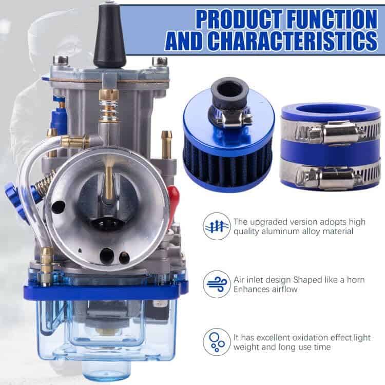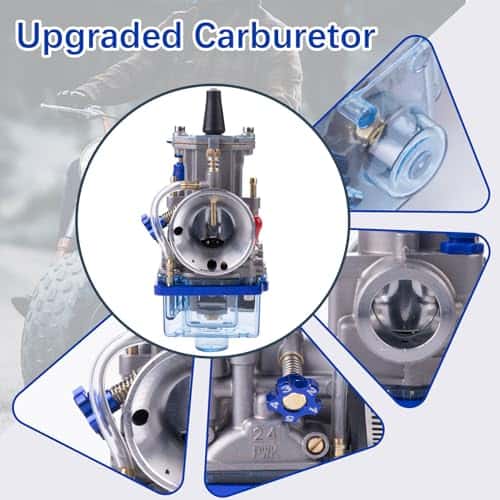 CIOM PWK 24mm Carburador De Admisión De Tubo Filtro De Aire Jet Kit es un producto de alto rendimiento diseñado para mejorar la potencia y rendimiento del motor de tu mini bike o go kart. Fabricado con materiales de alta calidad y un estricto control de calidad para garantizar durabilidad y eficiencia. El diseño del carburador y el tubo de admisión mejorados aseguran un flujo de aire estable y una atomización constante. Además, el filtro de aire de alta calidad garantiza que el motor reciba una cantidad óptima de aire limpio, lo que se traduce en un aumento de la potencia y un funcionamiento más suave. El kit incluye todo lo necesario para la instalación y viene con un servicio profesional post-venta para brindarte soporte técnico gratuito en caso de cualquier problema.