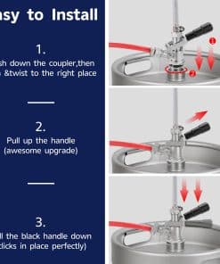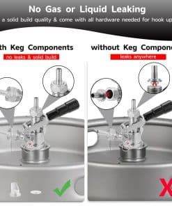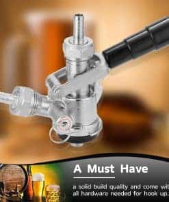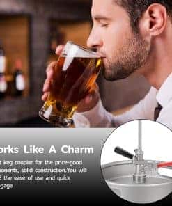 This beer coupler is chrome plated brass on the outside of the coupler, but has a stainless-steel probe that penetrates the keg, and beer is in contact with the stainless part of the coupler. Stainless Steel Probe lasts longer and More Sanitary. You can pour other products like wine, cider, cocktails, and coffee. Never Causing A Mess in Your Walk in Cooler or Kegerator: This is the Sankey coupler you want to use for all your installs. It�s reliable, last�s a long time and you can use it on any product, wine, coffee, cider, and beer. When you disengage this coupler from kegs, there�s no leaking from the probe of the coupler(made of stainless steel). How to Connect a Keg Coupler Adapter to a Draft Beer System: First, you�ll need to connect the beer line(use 5/16inch hose fitting) to the top of the coupler, and the red airline (use 5/16inch hose fitting) to the front of the coupler. These connections are locked in with hose clamps, package come with 4 stainless steel hose clamps. Easy to Install & Quick Disengage: Pull up the black handle and line the slots on the side of the tavern heard with the tag ends on the keg collar. Turn the coupler clockwise until it stops rotating(usually about a quarter turn). Pull the lever out and push down until the lever locks in place. You now have a tapped keg of beer. Ready to Tap a Keg of Beer: This Sankey coupler have a solid build quality and come with all hardware needed for hook up like washers, check valve, tail piece and even additional 4 hose clamps. This type keg tap fits perfectly into American kegs. It Features a U.S. beer industry standard G 5/8 thread. If you need a beer keg coupler then this is the right choice
