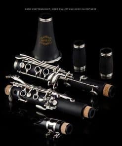 El clarinete Aiollins JCL-100 es un instrumento de alta calidad diseñado tanto para estudiantes como para clarinetistas profesionales. Este clarinete está afinado en Si bemol y cuenta con un sistema de 17 llaves Boehm para una excelente respuesta y entonación. El cuerpo está hecho de Ebonita, lo que proporciona un tono cálido y resonante. Las llaves niqueladas dan un tono claro y enfocado. Viene con un estuche rígido contorneado que facilita el transporte. Además, incluye accesorios como una caña Rico 2.5, paño de limpieza y grasa de corcho para mantener su clarinete en óptimas condiciones.