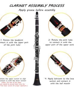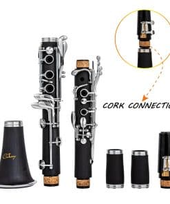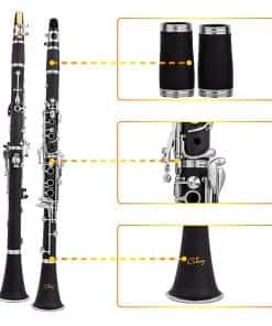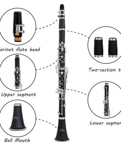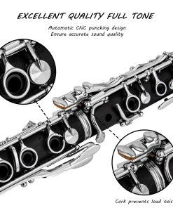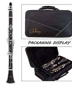 Clarinete Bb Cadway 17 Teclas de Níquel Negro – Instrumentos Musicales de Viento Madera para Principiantes de Banda y Orquesta, Incluye Clarinete, Estuche de Clarinete, Soporte. El clarinete es apto para cualquier jugador, ya sea que esté comenzando sus lecciones de música o tocando en una orquesta. Con un diseño elegante en negro, este clarinete no solo es visualmente atractivo, sino que también ofrece un sonido claro y nítido. La construcción de alta calidad garantiza durabilidad y facilidad de pronunciación, lo que lo convierte en una excelente elección. Además, viene con todos los accesorios necesarios, como estuche, soporte y paño de limpieza. ¡Haz tu pedido hoy y comienza tu aventura musical!