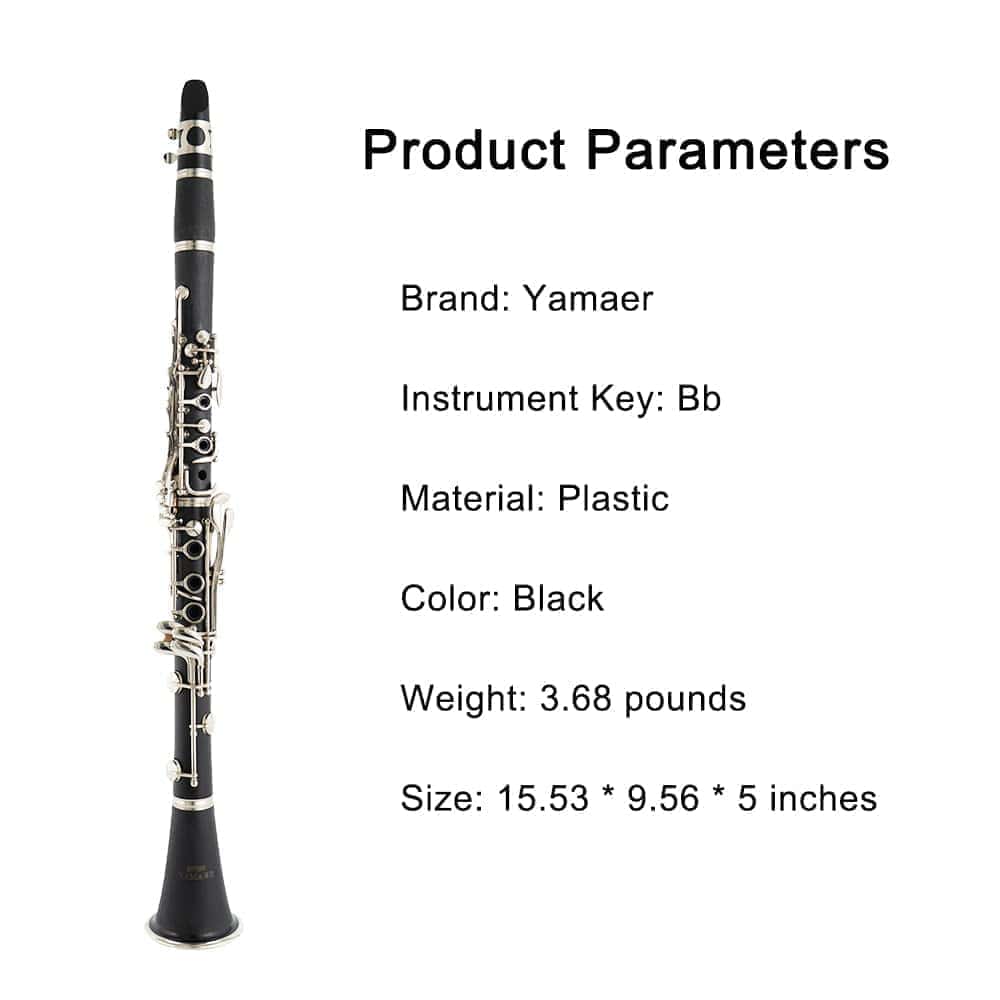 1. Diseño elegante El clarinete Yasisid consta de tres partes: boquilla, cuerpo del tubo y una máquina. La máquina está niquelada de latón, el diámetro del cuerno es de 83 mm y la longitud es de 677 mm. Este modelo es un clarinete estándar en tamaño clave de si bemol para estudiantes. 2. Excelente mano de obra El tubo del clarinete está perforado mecánicamente de forma digital para mejorar la estabilidad de la entonación. La unión de la boca del tubo está finamente pulida y se conecta estrechamente después del montaje. El diseño de la estructura del pistón es razonable y fácil de tocar. El instrumento es adecuado para adultos/principiantes. 3. Sonido maravilloso El clarinete B es hermoso en forma, preciso en la relación de intervalos, melodioso y suave en tono, lo que hace que las notas altas sean brillantes y claras, las notas medias completas en expresión y difusas en estado de ánimo, y las notas bajas profundas y profundas. Es un clarinete en si bemol que ahorra esfuerzo al tocar. 4. Ideal para principiantes Este clarinete es excelente para principiantes estudiantes y entusiastas de la música. Tiene una buena acción de tecla rápida. Incluso si estás empezando desde cero, esta es una buena inversión inicial para aprender desde el principio. La elección perfecta para un principiante en la música aprendiz. 5. Clarinete premium Es un instrumento para principiantes y un estudiante que continúe querrá eventualmente un instrumento de mejor calidad para tocar, pero instrumentos como este permiten que más aprendices participen. Fue perfecto para nuestros propósitos de principiante y aprendizaje.