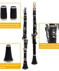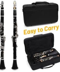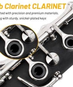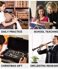 Nuestro clarinete está fabricado con material de madera, con una superficie suave y redondeada y resistentes llaves de níquel. La acción de la válvula de pistón es suave, las llaves son cómodas y la válvula de pistón es duradera, lo que prolonga la vida del instrumento y maximiza la calidad del sonido. Este clarinete es fácil de usar y viene con una herramienta de limpieza, kit de instrumentos ultraligero y ajustable, y fácil de transportar. Es el regalo perfecto para músicos jóvenes y mayores, o para aquellos que desean aprender un nuevo instrumento. Un elegante clarinete donde la calidad y la calidad de sonido coexisten. Nuestro objetivo es proporcionar a nuestros clientes una buena experiencia de compra. Si tienes alguna pregunta o sugerencia, contáctanos, estaremos encantados de ayudarte.