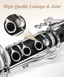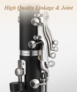 Eastar nunca te decepcionará. De todos modos, la combinación de un elegante cuerpo de baquelita ABS y llaves de níquel. El clarinete Eastar ECL-300 presume de un hermoso diseño y sonido manteniendo un punto de precio bajo, haciéndolo la mejor elección de la banda para los estudiantes y otros aprendices de clarinete. Los músicos estudiantes encontrarán que el clarinete Eastar ECL-300 es un instrumento fiable y fácil de tocar que tiene muy buenas prestaciones y durabilidad. El sistema de llaves Boehm de 17 teclas de Eastar proporciona una buena respuesta y una facilidad de reproducción suave para los estudiantes de banda. Miles de tutores respaldan el clarinete. Elige Eastar, tendrás soporte de servicio posventa de 12 meses. Especificaciones: 1. Color: Llaves de níquel plateado. 2. Llave: Si bemol 3. Nivel: Instrumento de nivel principiante e intermedio 4. Material: Baquelita ABS 5. Peso del artículo: 3.9 lb / 1.8 kg 6. Tamaño del paquete: 16.9 (L) x 4.7 (A) x 9 (H) pulgadas / 43 (L) x 12 (A) x 23 (H) cm 7. Material del estuche: Estuche duro ligero de nylon cubierto con peluche de alta calidad. Paquete incluido: 1 x Clarinete para estudiantes ECL-300 llaves de níquel plateado 1 x Boquilla 4C 1 x Abrazadera de metal 1 x Tapa protectora de boquilla 2 x Conector de boquillas 8 x Anillo de oclusión 2 x Cubierta de pulgar 1 x Paños de limpieza de clarinete 1 x Soporte de clarinete 2 x Cañas de práctica (tamaño 2.5″) 1 x Cañas de resina negra (tamaño 2.5″) 1 x Grasa para juntas 1 x Paño 1 x Guantes blancos 1 x Estuche duro de nylon resistente con forro de peluche.