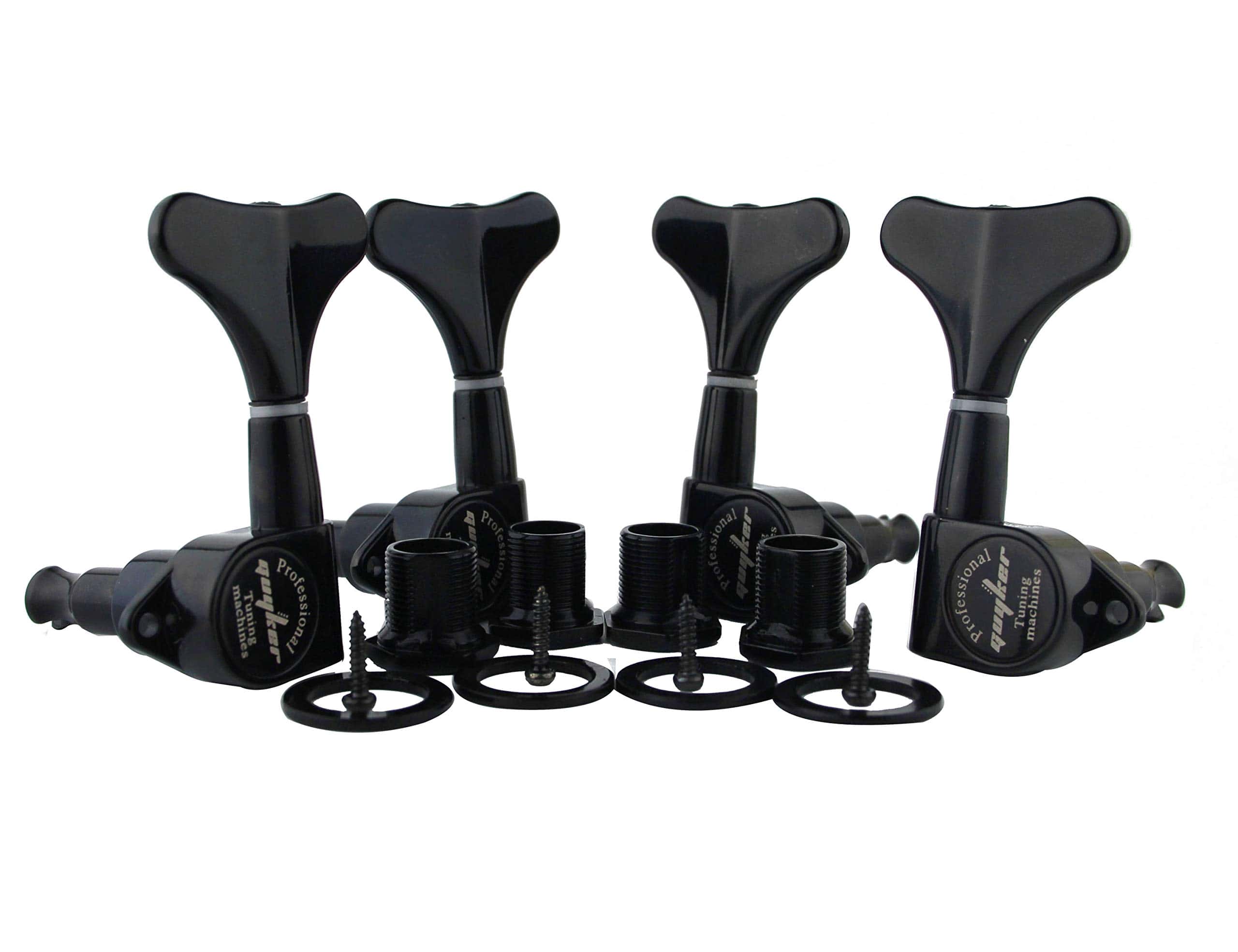 Clavijas Afinadoras para Guitarra Bajo Guyker (2R + 2L) – Relación de Engranaje de 1:17 Cabeza Sellada de Clavijas de Afinación Repuesto para Bajo Eléctrico Jazz o Instrumentos Precision – Negro