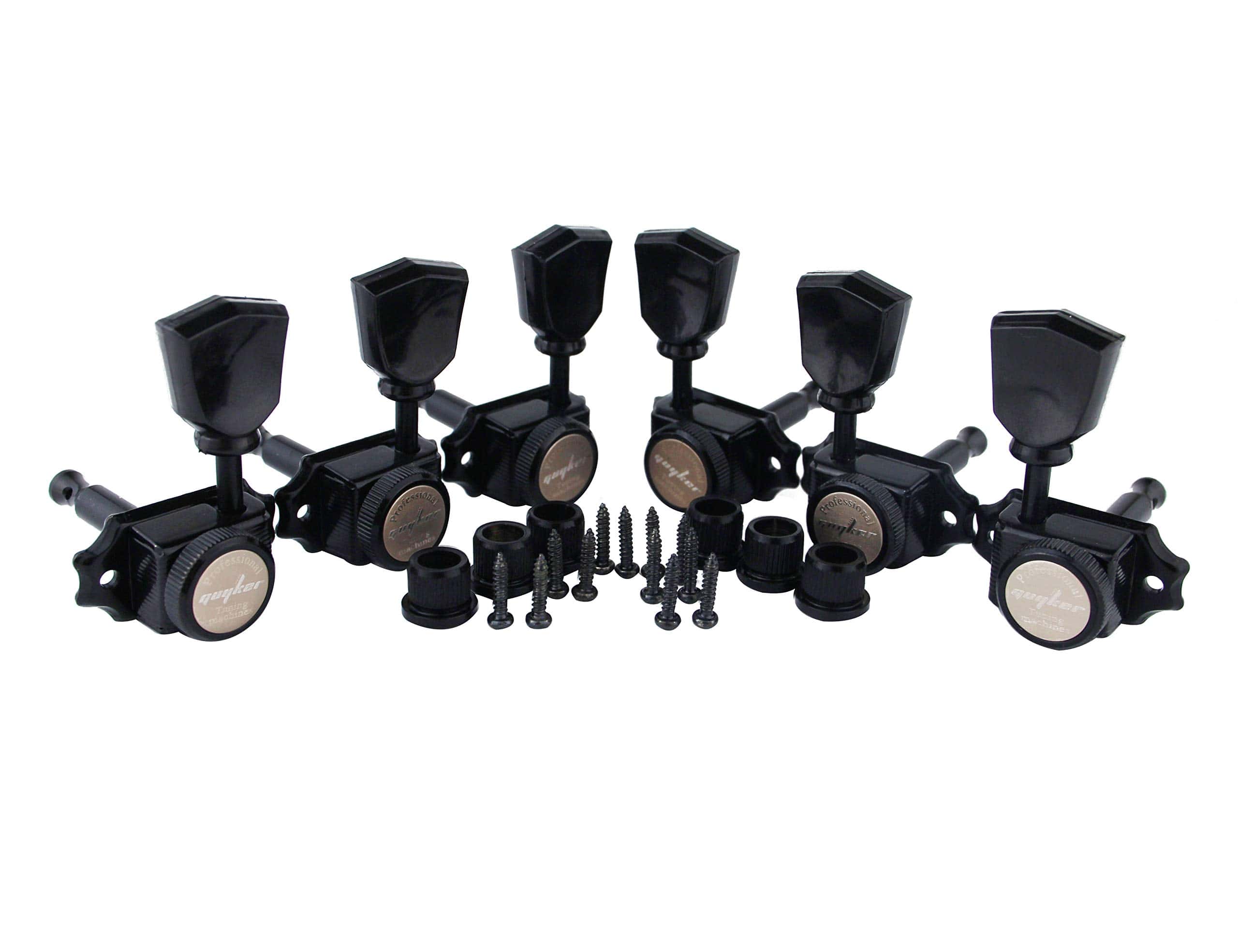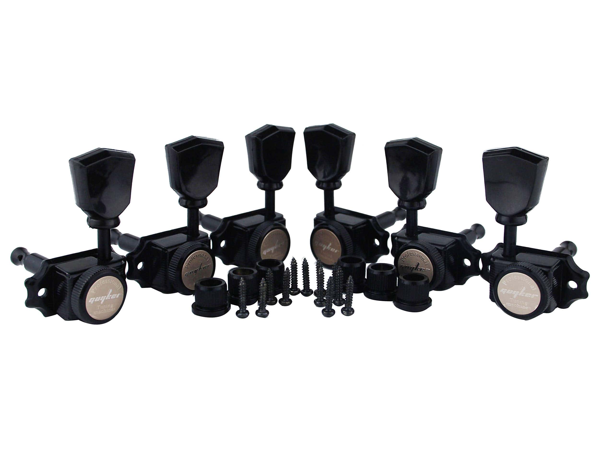 Paquete incluye: 6 piezas (3 para derecho, 3 para izquierdo) clavijas de afinación bloqueables para guitarra, 12 tornillos de montaje, 6 casquillos roscados, buen reemplazo para guitarras eléctricas o acústicas estilo LP, SG, TL. Clavijas de afinación selladas para guitarra con engranaje interno resistente, robusto y conveniente. Fácil de instalar, fácil de reemplazar tus clavijas de afinación viejas o sucias. Las clavijas bloqueables de Guyker ayudan a proporcionar una afinación más fina y una mayor estabilidad. Botón negro en forma de tulipán con carcasa sellada. Plateado en negro. Relación de engranaje – 1:15, diseñado para adaptarse a orificios de pala modernos de 9mm. Por favor, verifica el dibujo de parámetros en las imágenes adjuntas antes de realizar tu pedido.