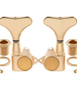 Clavijas de afinación selladas para bajo Musiclily Pro 2+2 para bajo eléctrico, diseñadas para estilo Ibanez Precision Jazz Bass. Estas clavijas son de color dorado y se adaptan a agujeros de clavijero de 13,6 mm (9/16 pulgadas) de diámetro. Están fabricadas en metal de aleación de alta calidad con una relación de engranajes de 17:1, lo que garantiza una afinación precisa y estable. Este juego de 2×2 clavijas de afinación para bajo incluye tuerca, virola y tornillos, todo lo necesario para una instalación fácil y segura. Actualiza y mejora el rendimiento de tu bajo con estas clavijas de afinación de alta calidad.
