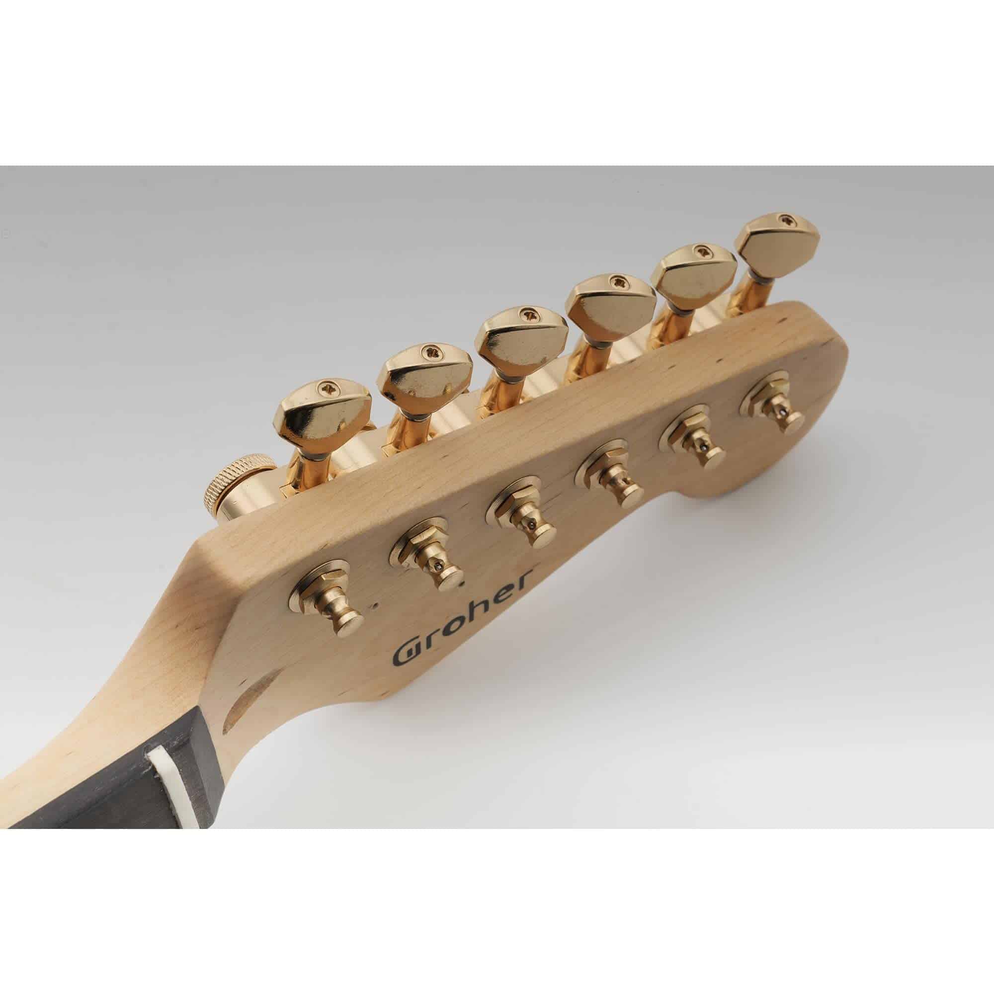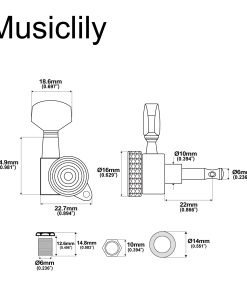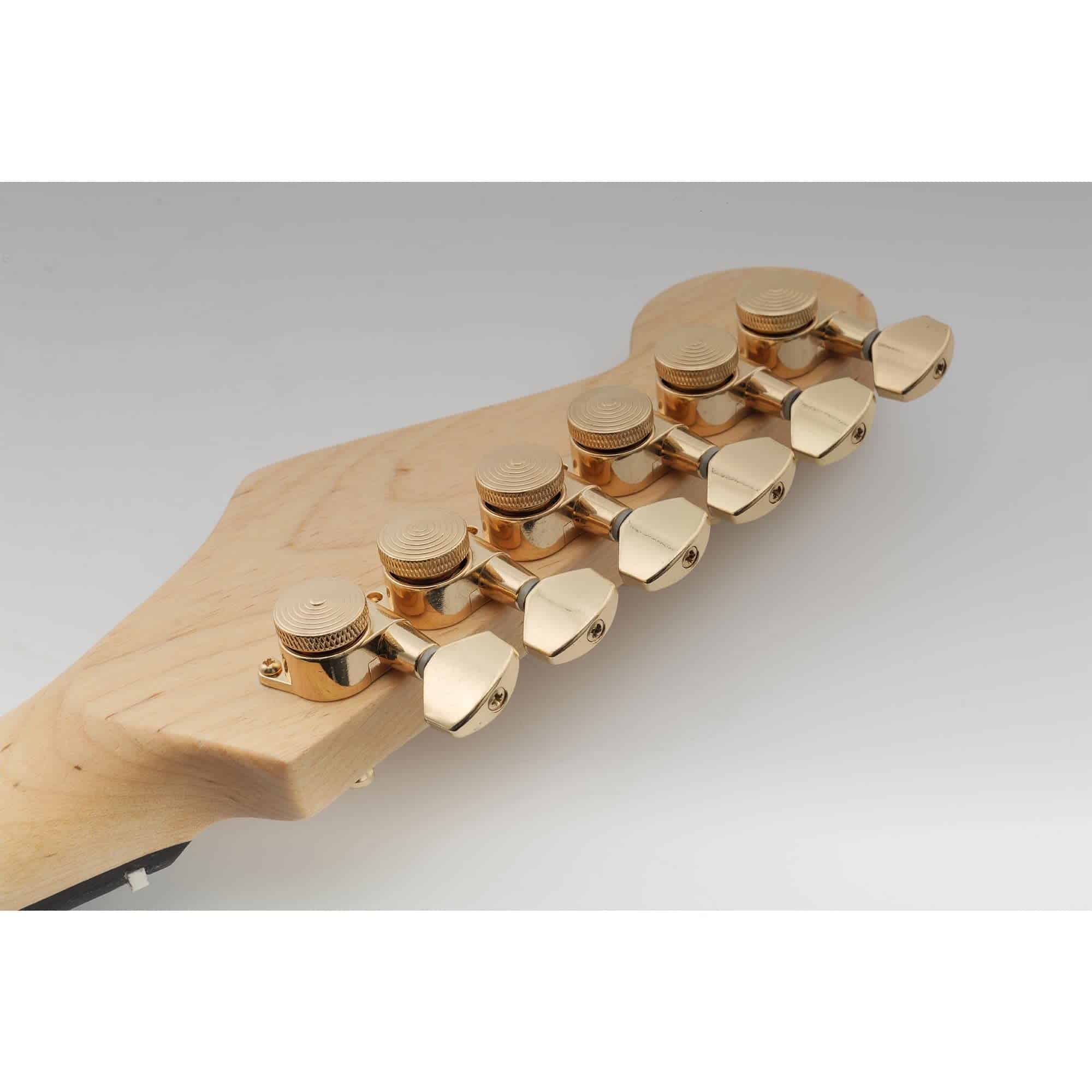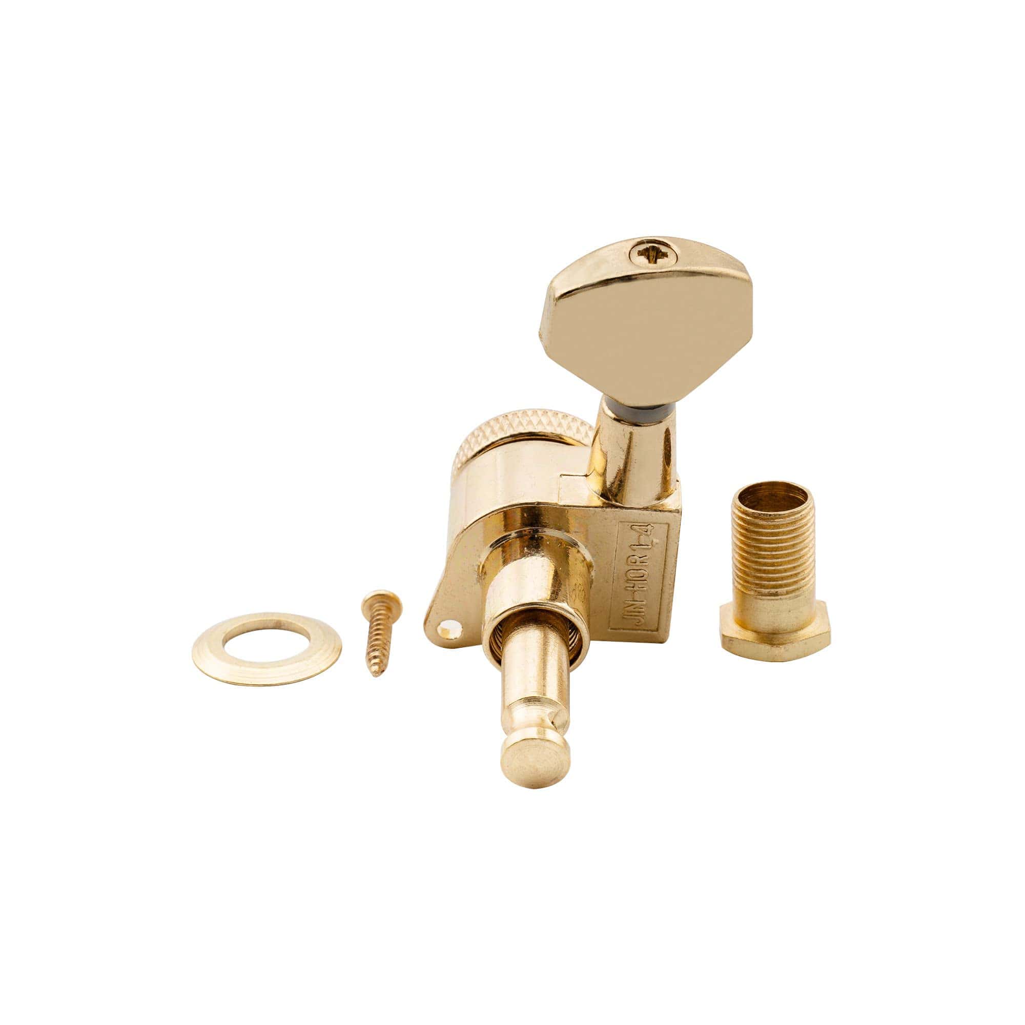 Clavijas de afinación con bloqueo Musiclily Ultra 6-en-línea 19:1 para guitarra eléctrica Fender Stratocaster/Telecaster. Estas clavijas son ideales para guitarras con agujero de clavija moderno de 10 mm y cuentan con un diseño clásico estándar con una relación de 19:1 para una afinación suave. Fabricadas en metal completo y con un acabado electroplateado de calidad, estas clavijas son duraderas y fáciles de usar. El juego completo de 6-en-línea incluye todos los accesorios de montaje necesarios para una instalación sencilla.