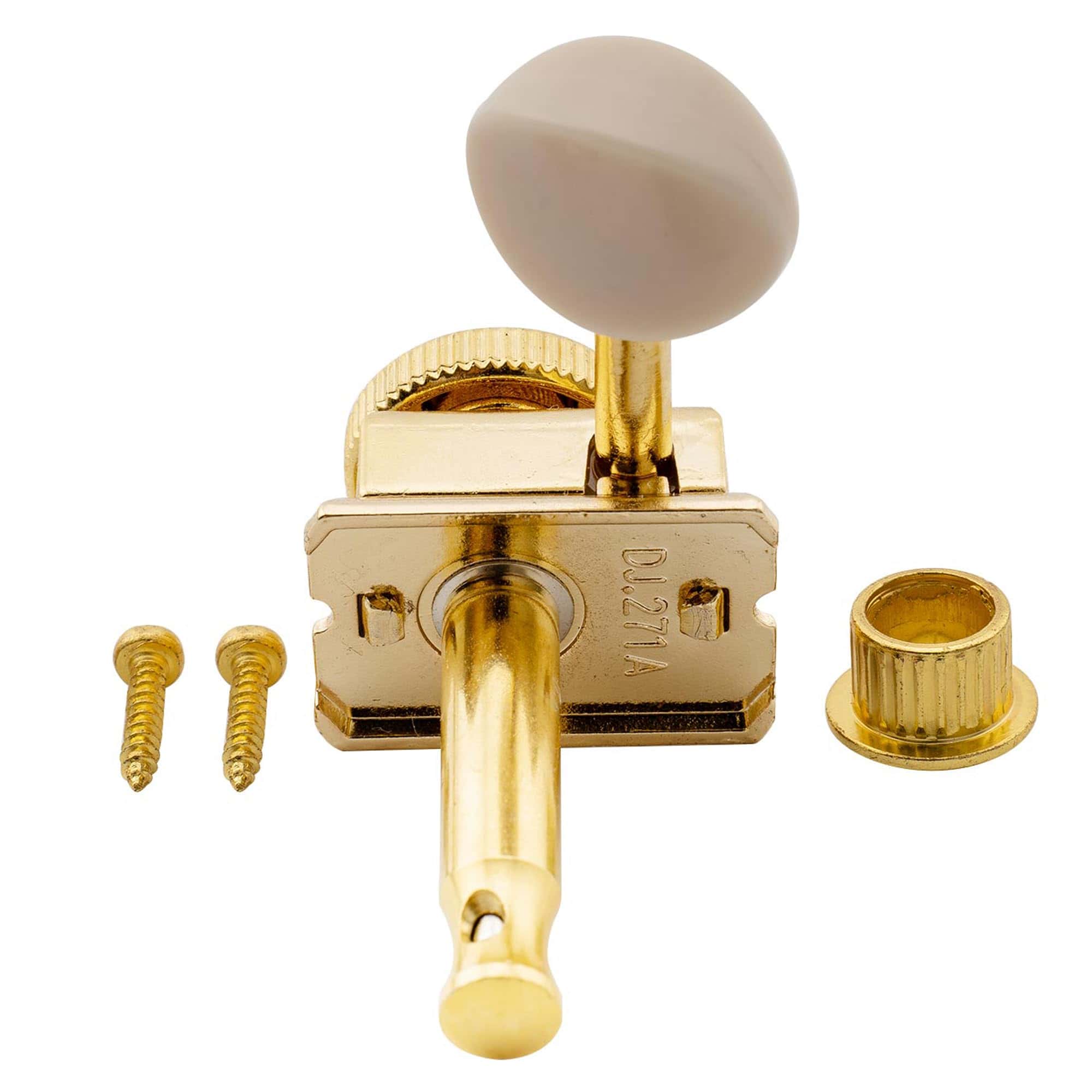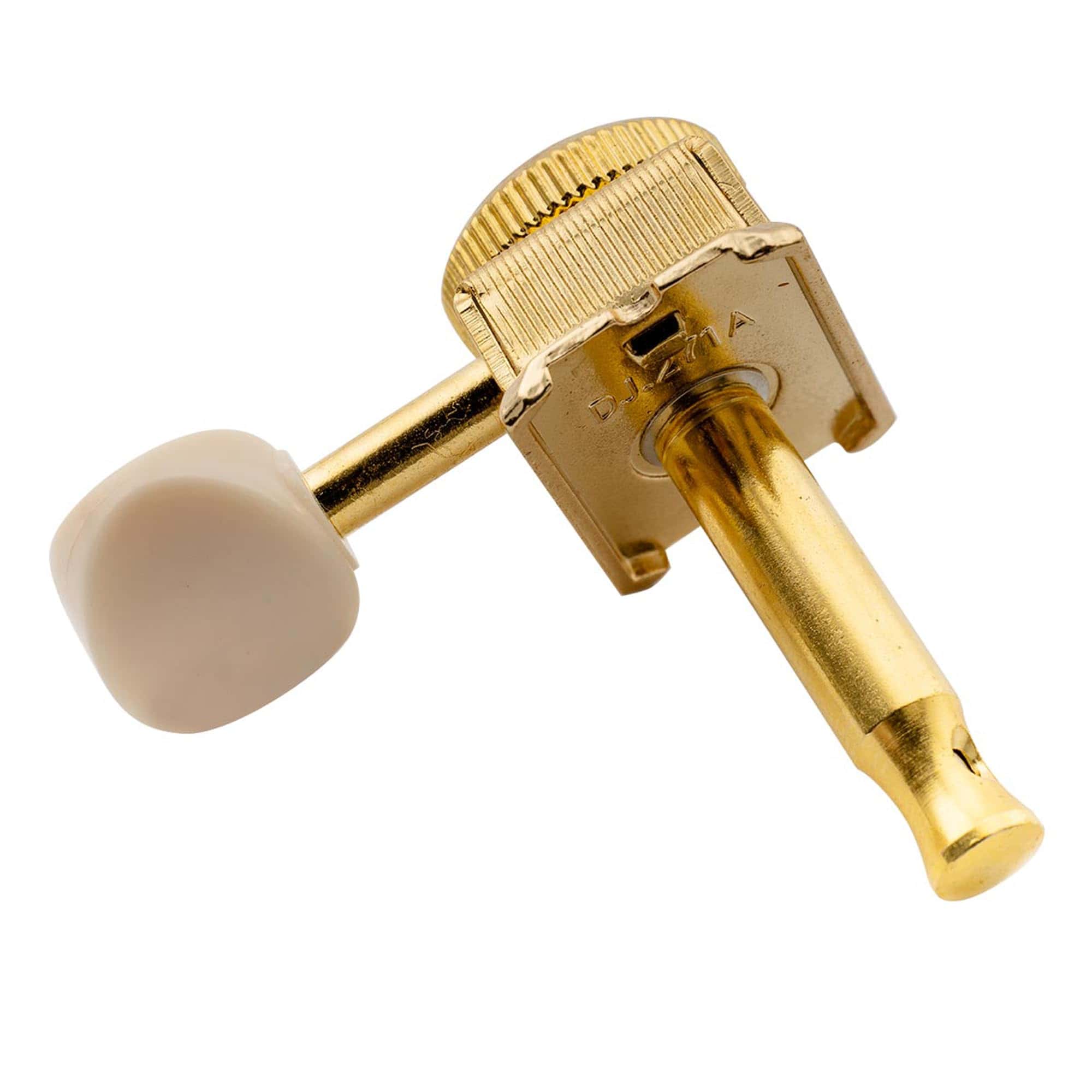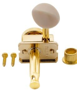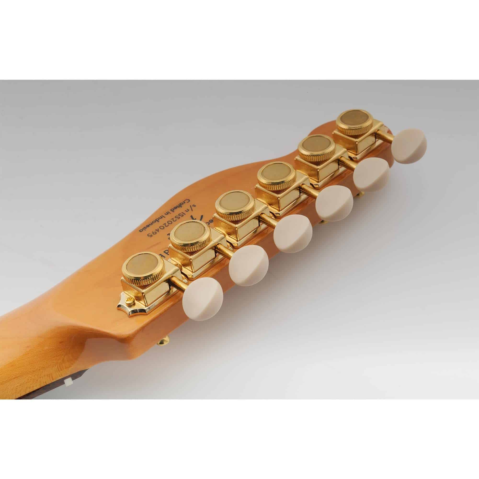Clavijas de afinación con bloqueo para guitarra eléctrica Fender Squier Classic Vibe Strat/Tele, estilo híbrido vintage, 6 en línea, doradas con botón ovalado de plástico. Ideales para mantener tu guitarra afinada de forma rápida y precisa, con un diseño vintage que le dará un toque único a tu instrumento. Fabricadas con materiales de alta calidad para garantizar una larga durabilidad y un rendimiento óptimo. Un accesorio imprescindible para cualquier guitarrista que valore la estabilidad y precisión en su sonido.