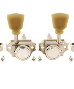 Ideal para muchas guitarras eléctricas o acústicas estilo LP/SG/ES/Flying V u otras similares. Por favor, verifica el tamaño de tu clavija antes de comprar. Diámetro del eje: 6mm (15/64), diámetro exterior de la funda vintage: 8.3mm (21/64), NO el agujero de la clavija moderna de 10mm (25/64), por lo que si intentas instalarlo en la cabeza de una guitarra moderna con agujero de 10mm, necesitarás una funda de conversión para ayudar. Relación 1:15, la función de bloqueo de las clavijas te ayuda a afinar rápido, suave y mantener tu guitarra afinada.