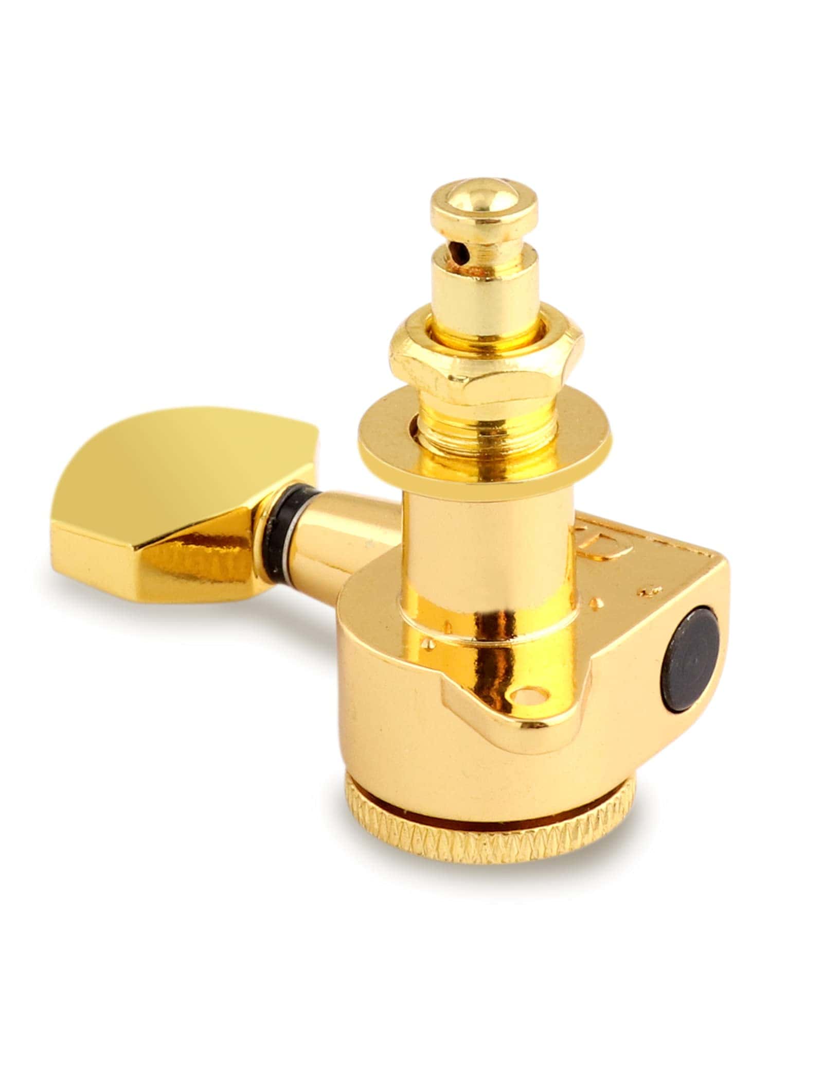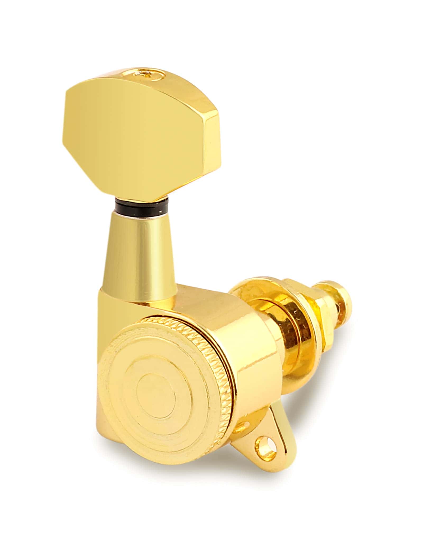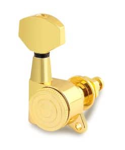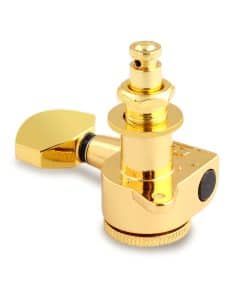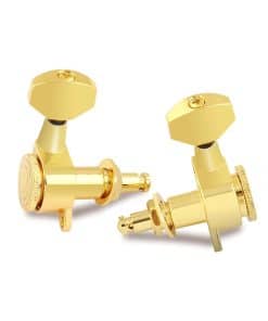 Estas clavijas cuentan con una función de bloqueo de rueda de pulgar para mantener las cuerdas seguras en su lugar. Esto evita el deslizamiento de la cuerda y también te permite cortar el exceso de cuerda. No tienes que envolver la cuerda alrededor de los postes varias veces como lo haces con un afinador de máquina no bloqueante. Simplemente pasa la cuerda por el agujero en la clavija y gira la rueda de pulgar para asegurarla en su lugar. Simple y efectivo, y acelera el proceso de cambio de cuerdas.