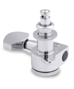 Estas clavijas de afinación cuentan con una función de bloqueo de rueda de pulgar para mantener las cuerdas de forma segura en su lugar. Esto evita el deslizamiento de las cuerdas y también te permite cortar el exceso de cuerda. No tienes que dar vueltas a la cuerda alrededor de los postes varias veces como haces con un afinador de máquina sin bloqueo. Simplemente pasa la cuerda por el agujero en la clavija, luego gira la rueda de pulgar para asegurarla en su lugar. Simple y efectivo, acelera el cambio de cuerdas.