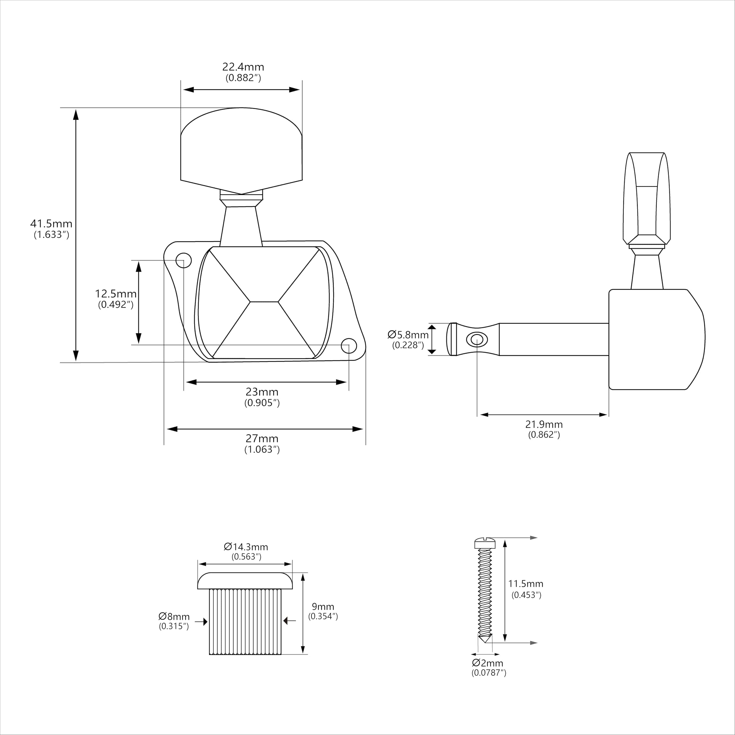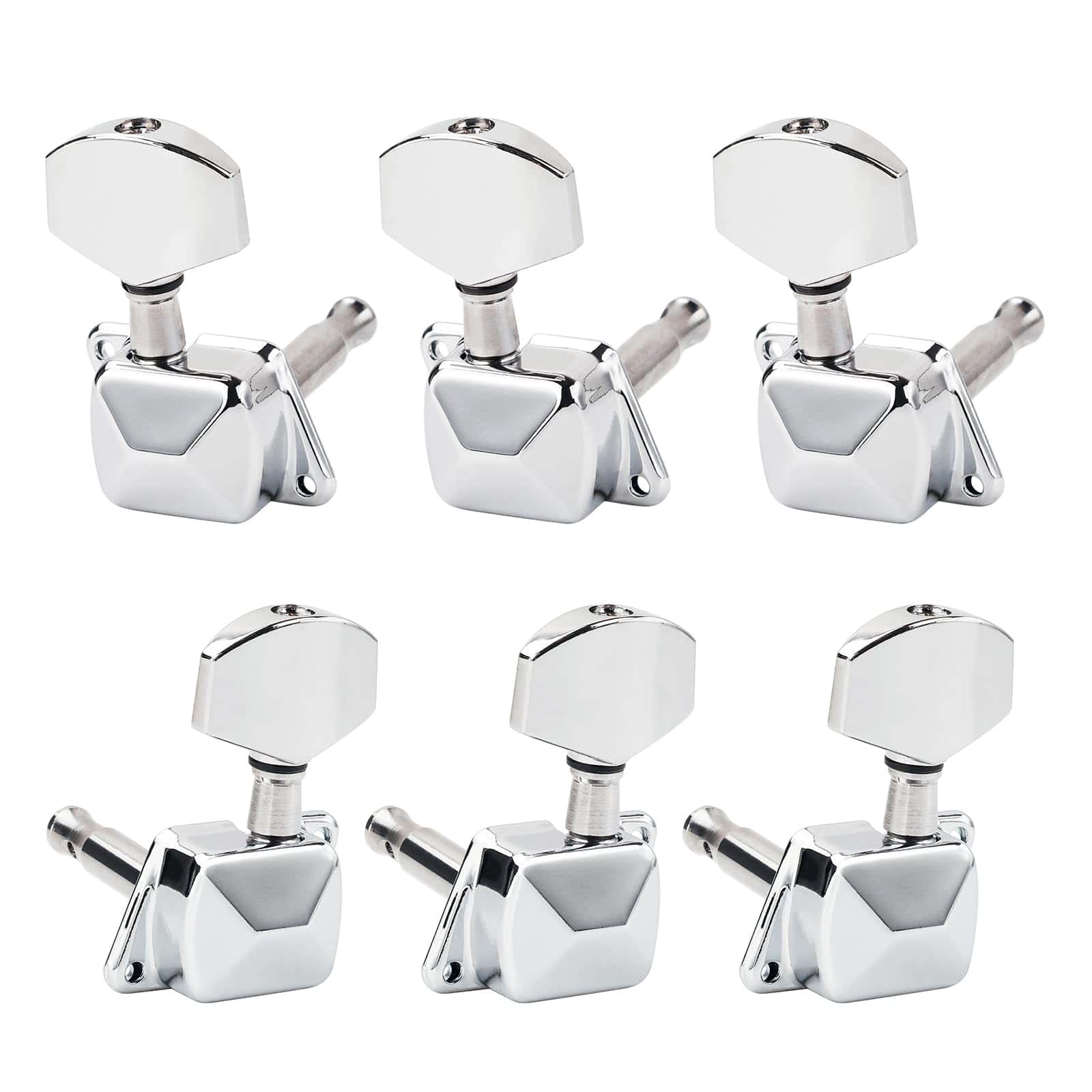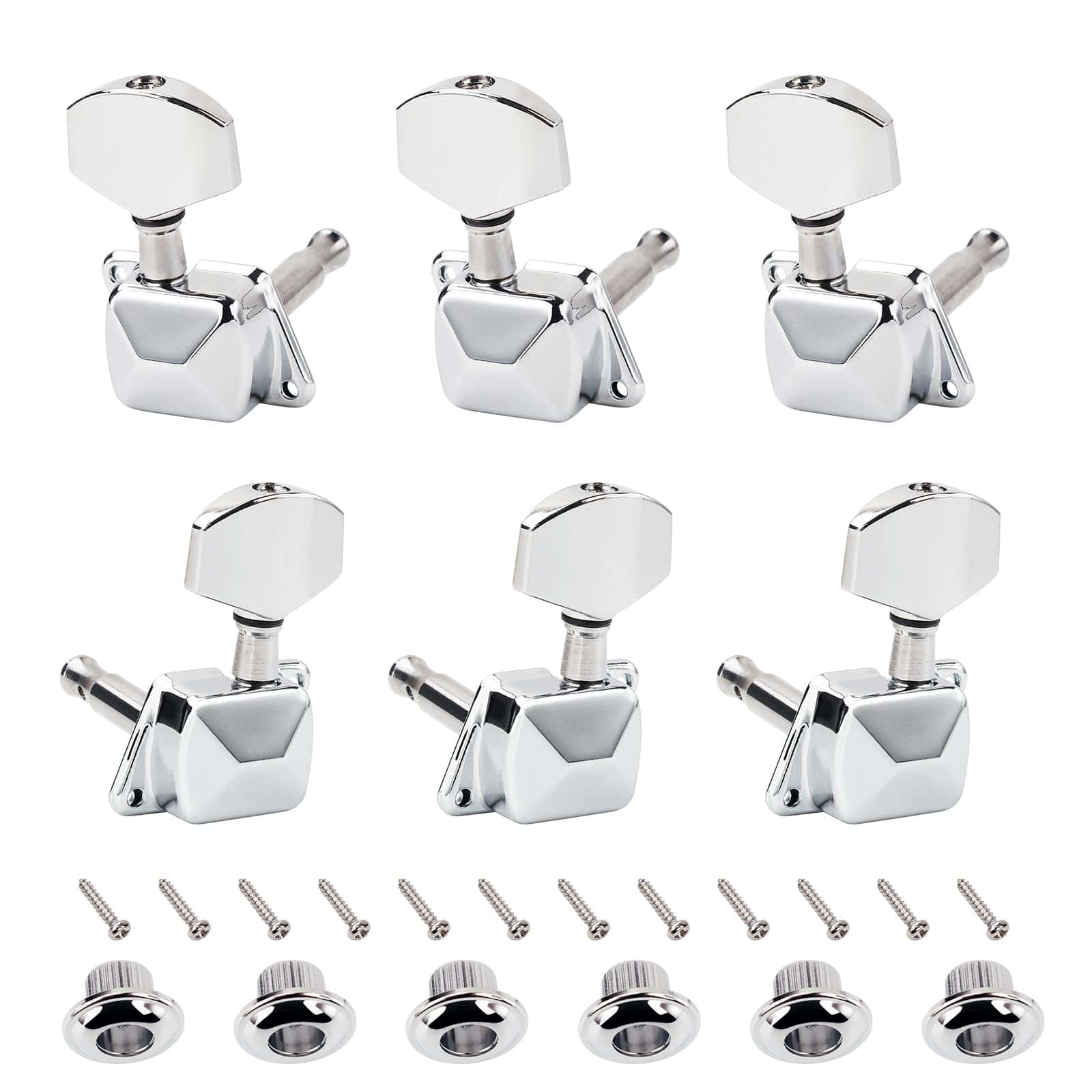 Fit for Les Paul LP electric guitars or acoustic guitar with peg holes of 8mm (5/16″) diameter and double 45 degree fixing tag. Modern peg holes of 8mm (5/16″) diameter and double 45 degree fixing tag, with a 15:1 gear ratio for precise tuning. Made from premium alloy metal for durability and reliability. Includes 6 tuning pegs (3L + 3R) along with a complete set of screws, bushings, and washers for easy installation and setup. Please refer to the detailed product specifications in the images section for an ideal match before purchasing.