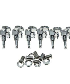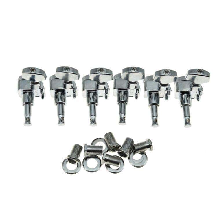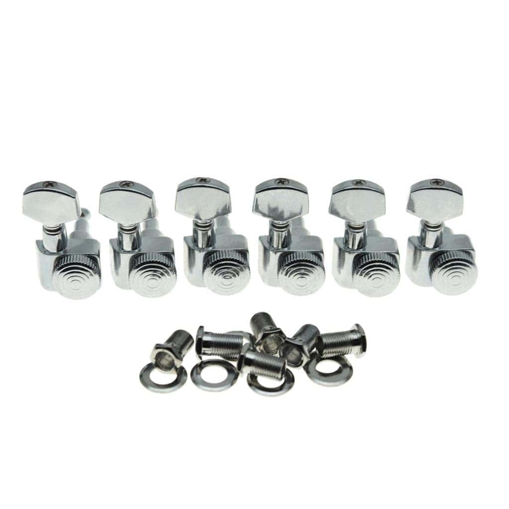 Clavijas de afinación de guitarra con bloqueo de 2 pines Dopro cromadas para American Fender Strat/Tele. Relación de afinación de 16:1; Se adapta a agujeros de ajuste modernos de 10 mm; Tipo de 2 pines, no se necesitan tornillos de montaje. La calidad es excelente y el acabado es impecable, con un acabado suave y brillante en todos los ángulos (estas no son clavijas de sintonización baratas e inferiores); Solo pasa la cuerda por el agujero, aprieta la rueda de bloqueo, y ajusta la cuerda. Estas clavijas de afinación pueden adaptarse a la mayoría de las guitarras American Standard Fender Strat/Tele, en cuanto a otros tipos de strats o teles, por favor, verifica la foto de dimensiones para confirmar si pueden adaptarse a tu guitarra antes de ordenar el artículo. Por favor, contáctanos si tienes algún problema con el artículo antes de dejar un comentario, haremos todo lo posible para servirte tan pronto como recibamos tu mensaje. El paquete incluye: Juego de 6 clavijas de afinación con bloqueo de 2 pines para guitarra con casquillos y arandelas