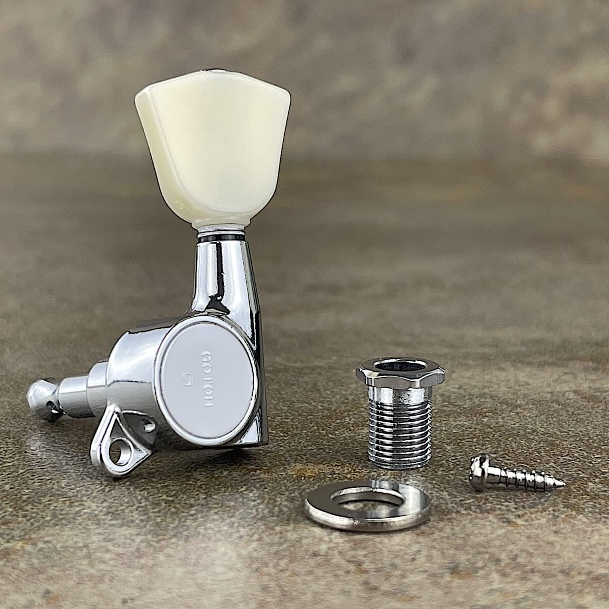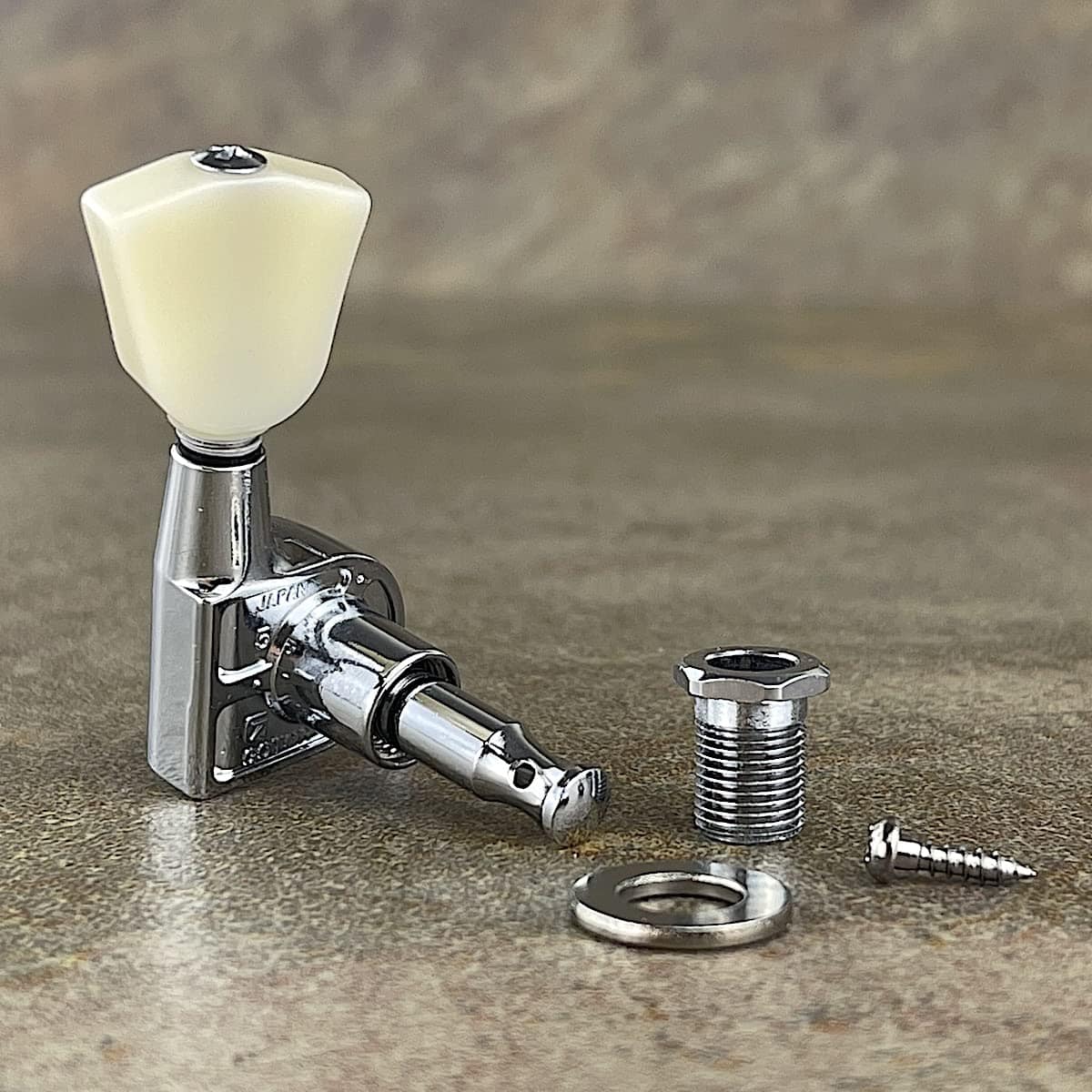 Estos super afinadores son reconocidos como tales en todo el mundo. El SG381 cuenta con una relación de engranajes de 16:1 y ha evolucionado a través de mejoras sin compromisos en ninguna etapa y viene equipado con una considerable aplicación de alta tecnología como estándar. Con la mejora de los engranajes de ajuste de precisión, un toque maravilloso al tocar, han ganado una considerable reputación y son confiados como el cabezal No. 1 por muchos músicos de todo el mundo. Estos vienen con un cabezal de perla y son perfectos para tu configuración de tres por lado. Kit de instalación incluido.