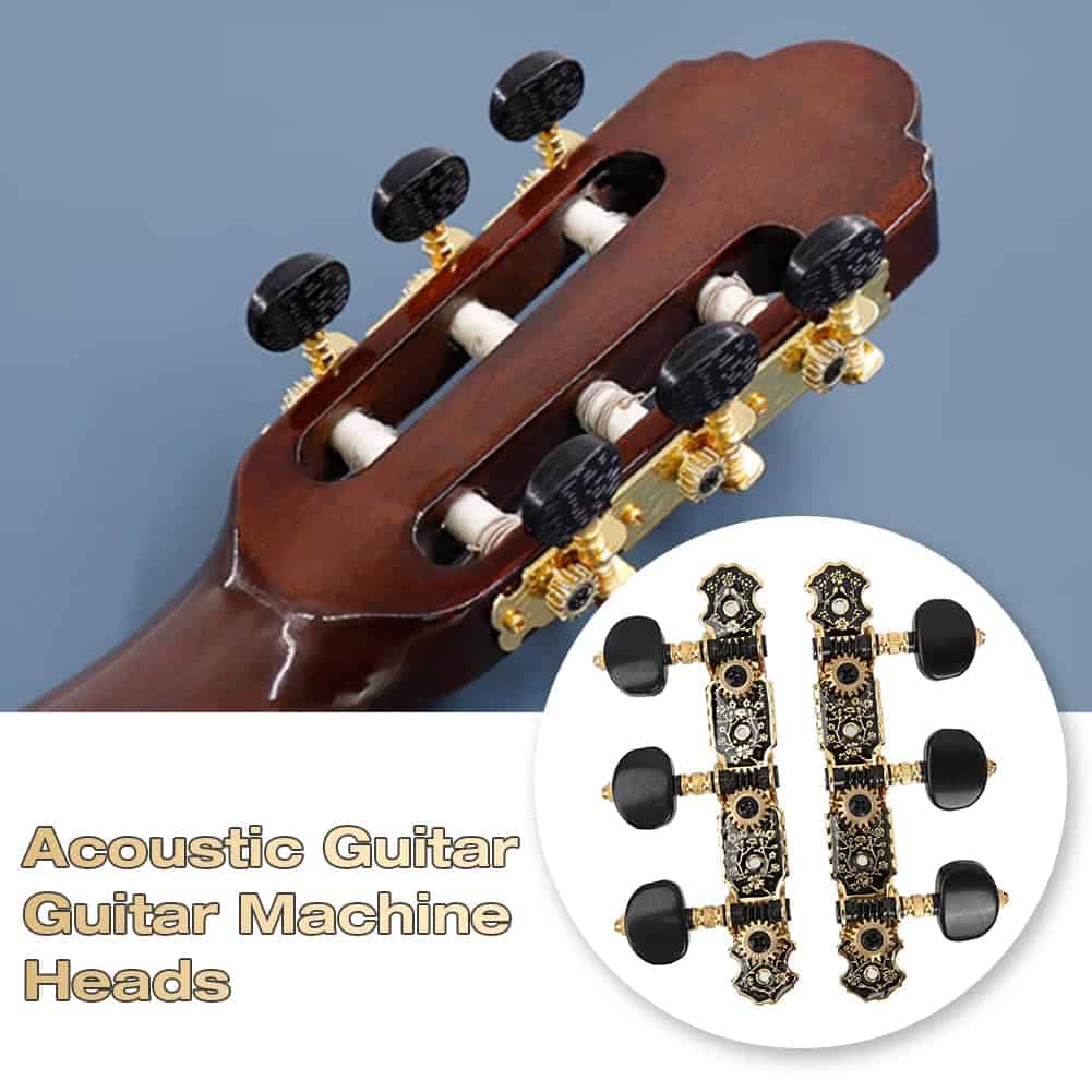Clavijas de afinación para guitarra acústica, clavijas de cabezales de máquina de afinación de guitarra 1:18, clavijas de máquina de reemplazo 3L3R. Las clavijas de afinación están construidas con metal de alta calidad y plástico, son resistentes al óxido y a la corrosión, lo que garantiza un buen rendimiento de estabilidad y durabilidad. Vienen con 3 cabezas de máquina izquierda y 3 derecha, junto con otros accesorios de fijación, lo que las hace fáciles de instalar. Las clavijas de afinación afinan de manera rápida y precisa, evitando que la guitarra se desafine con facilidad. Su aspecto exquisito y brillante con una mano de obra y apariencia atractiva le dan un toque elegante a tu guitarra. Ideales como piezas de reemplazo para tu guitarra clásica.