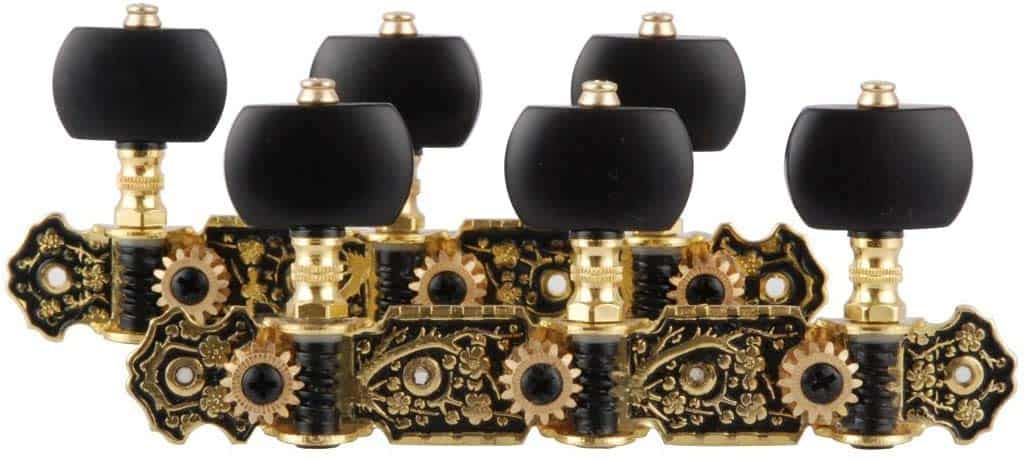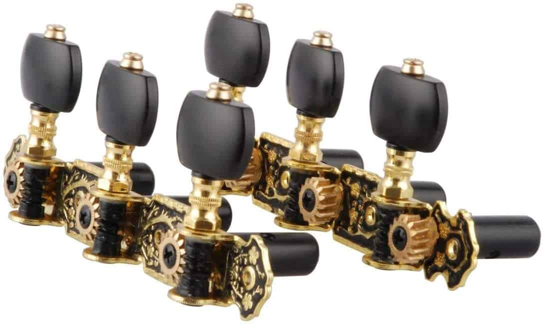 Características: 100% nuevo Relación de engranajes: 1:15 Duradero, confiable y fácil de afinar 3 Clavijas de máquina chapadas en oro de alta calidad absolutamente garantizadas ¡Llaves de afinación de guitarra! Chapadas en oro con detalles negros. Clavijas de imitación a ébano con efecto perla de grano. Tres en una tabla, las clavijas de afinación de guitarra son ideales para la afinación de la guitarra. Para guitarra clásica.