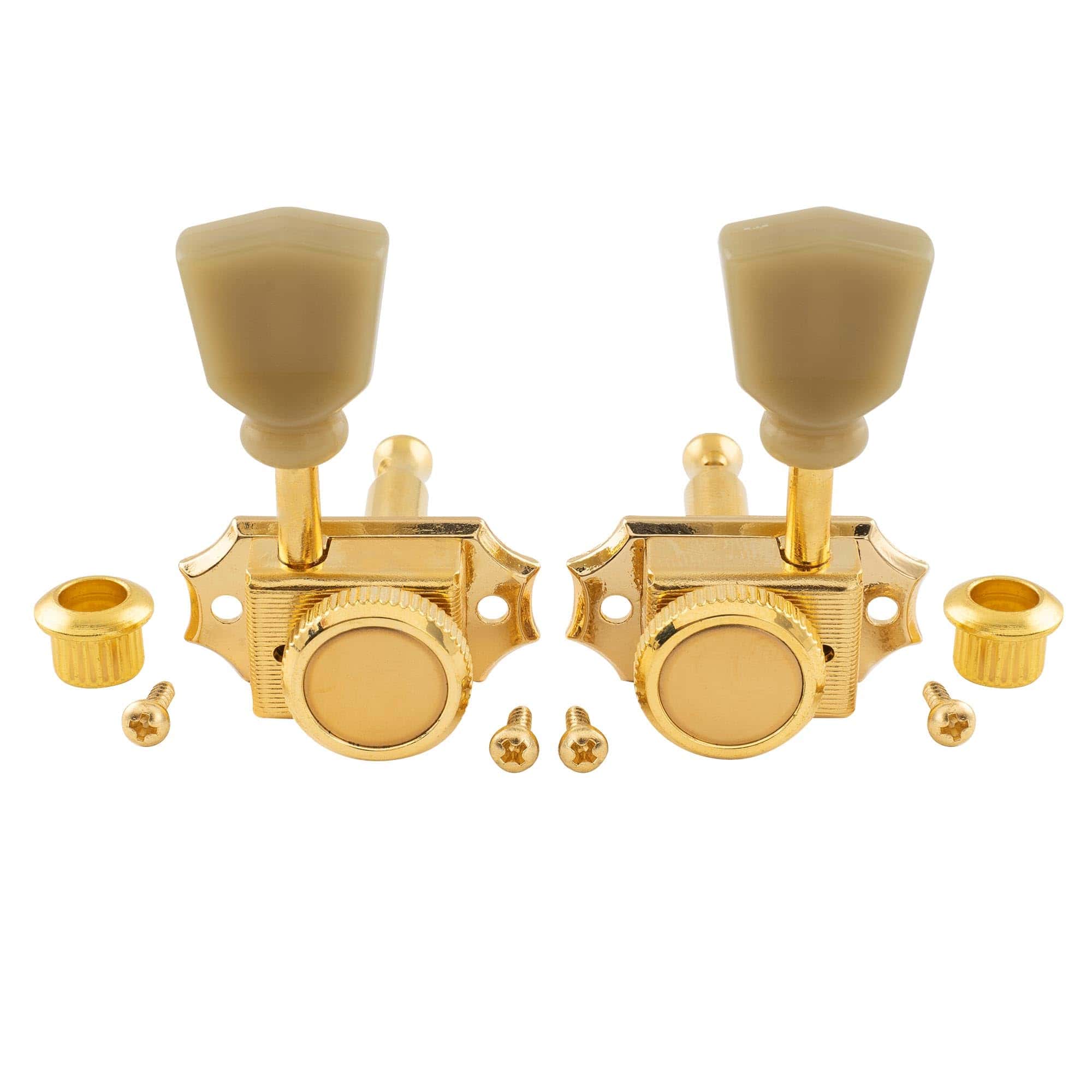 Ideal para muchas guitarras eléctricas o acústicas estilo LP/SG/ES/Flying V o similares, por favor verifique el tamaño de su clavija antes de comprar. Diámetro del vástago: 6mm (15/64), diámetro exterior del casquillo de estilo vintage: 8.3mm (21/64), NO es el agujero de clavija moderno de 10mm (25/64), por lo que si intenta instalarlo en una cabeza de guitarra de agujero de clavija moderno de 10mm, necesitará un casquillo de conversión para ayudar. Relación 1:15, la función de bloqueo de la clavija de afinación te ayuda a afinar rápidamente, suavemente y mantener tu guitarra afinada. Diseño de bloqueo vintage y moderno, eje estable mejorado, acabado de electrochapa de alta calidad y hardware.