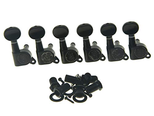 Clavijas de afinación para guitarra Wilkinson Mini Oval Button 6 en línea con poste E-Z en color negro – Clavijas de afinación de guitarra con cabezales de máquina