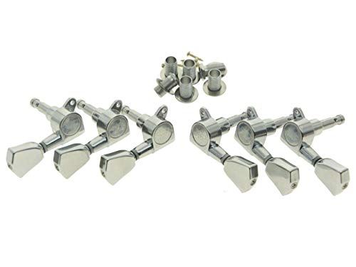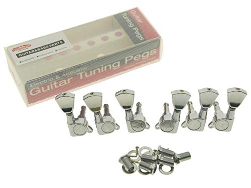 Clavijas de afinación para guitarra Wilkinson 3L3R cromadas con postes E-Z-LOK, clavijas de afinación para guitarra EZ Post con botón de tulipán para Les Paul o guitarra acústica. Por favor, ten en cuenta que estas no son clavijas de bloqueo, son clavijas especiales E-Z Post de Wilkinson. Estas clavijas solo se ajustan a agujeros de sintonizador modernos de 25/64» (10 mm) con etiqueta de fijación a 45 grados. Relación de afinación de 15:1; Instrucciones no incluidas, pero puedes consultar la foto de instalación en la lista. Estas clavijas son postes de altura no escalonada, los postes tienen la misma altura, por lo que la guitarra requerirá que conserves el árbol de cuerdas; Se ajusta a guitarras con pala de 10 mm de agujeros de sintonizador. Configuración de 3 izquierda y 3 derecha para algunas Les Paul o guitarras acústicas; Los tornillos, casquillos y arandelas están incluidos.
