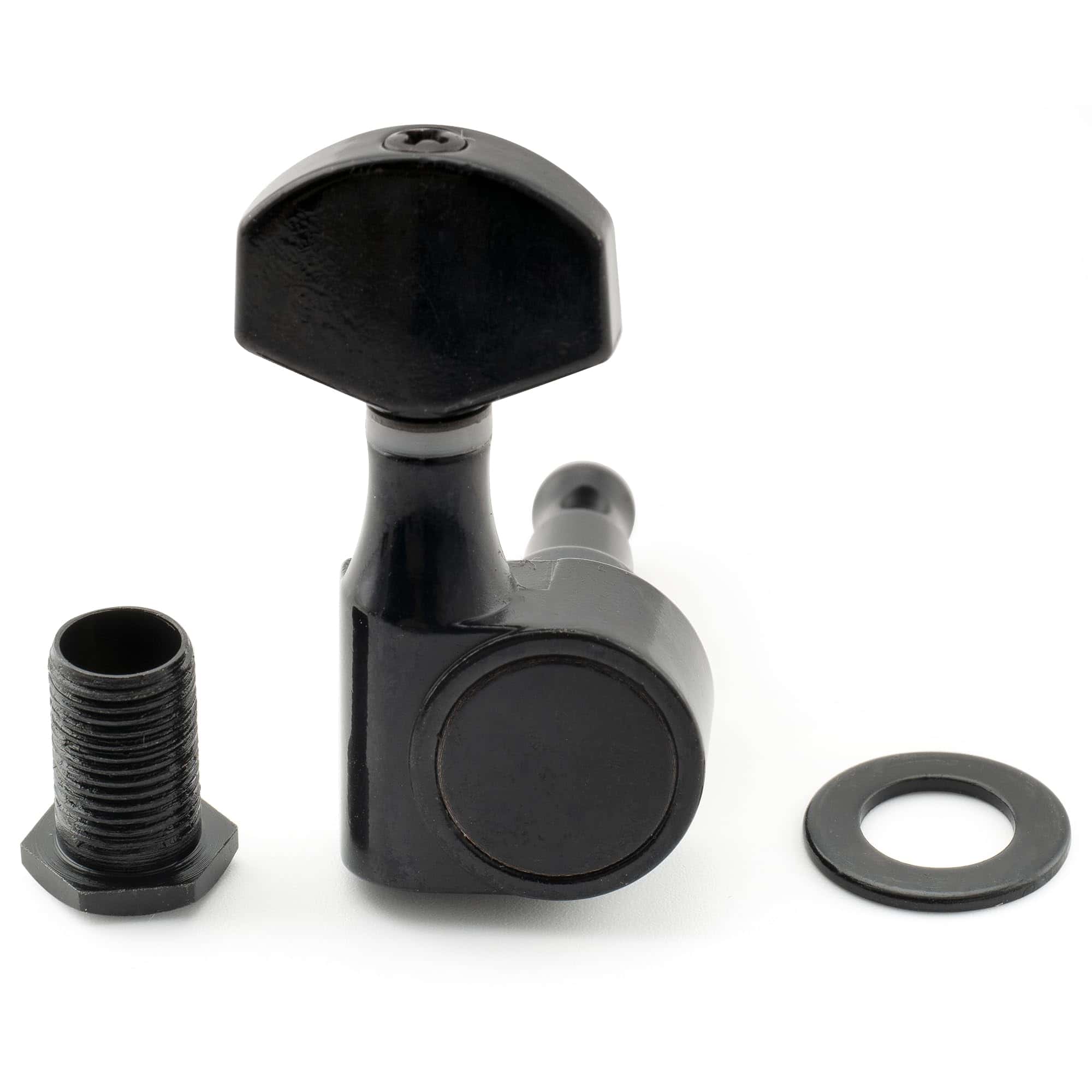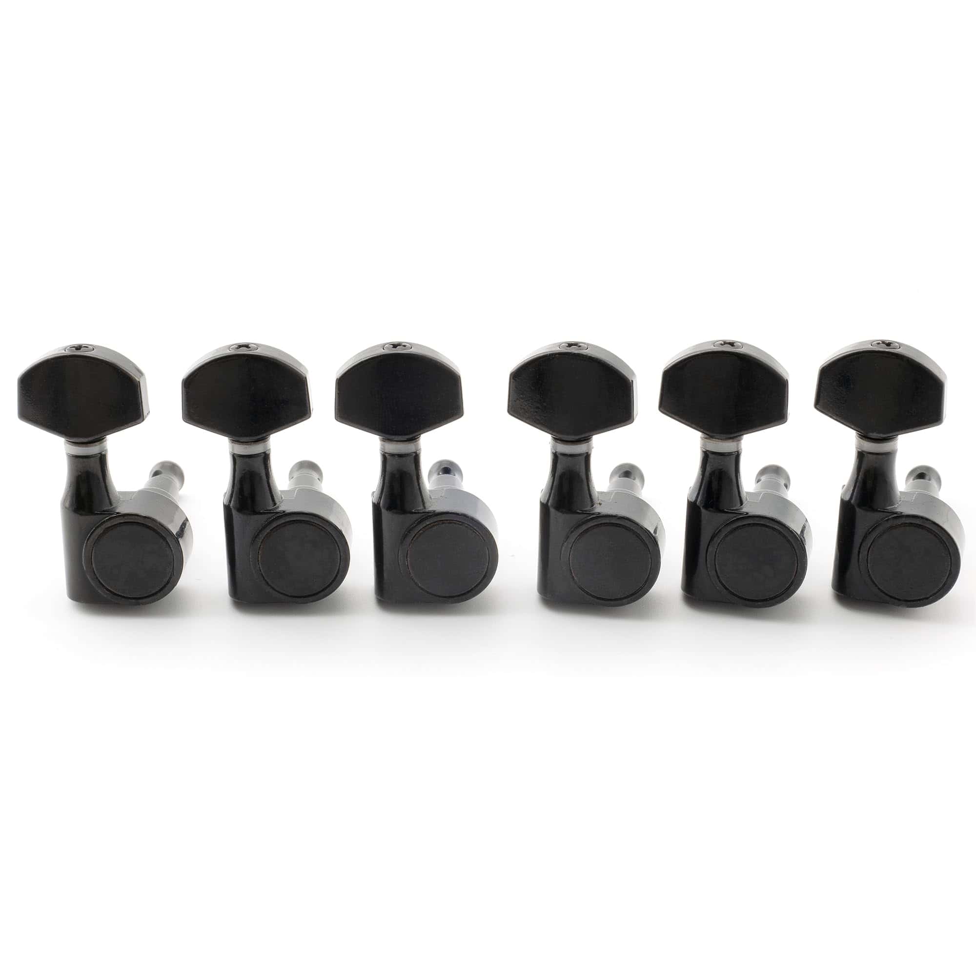 Clavijas de afinación selladas Musiclily Pro de 6 en línea con una relación de 15:1 y 1 pin, con botón hexagonal, para guitarras eléctricas estilo SQ Strat Tele, negras.