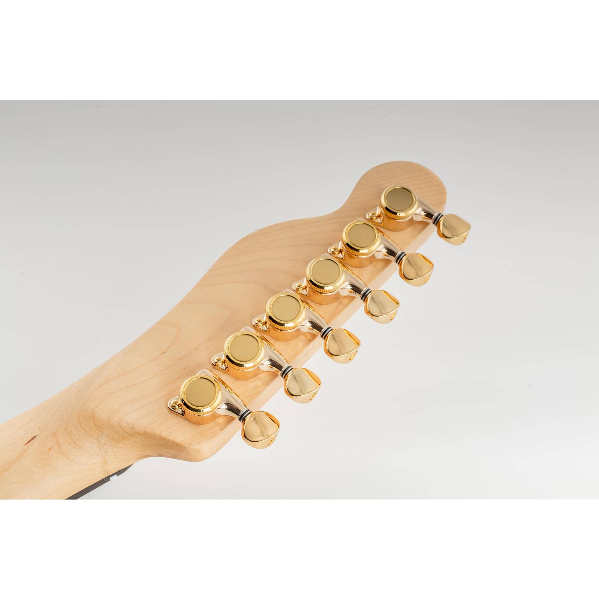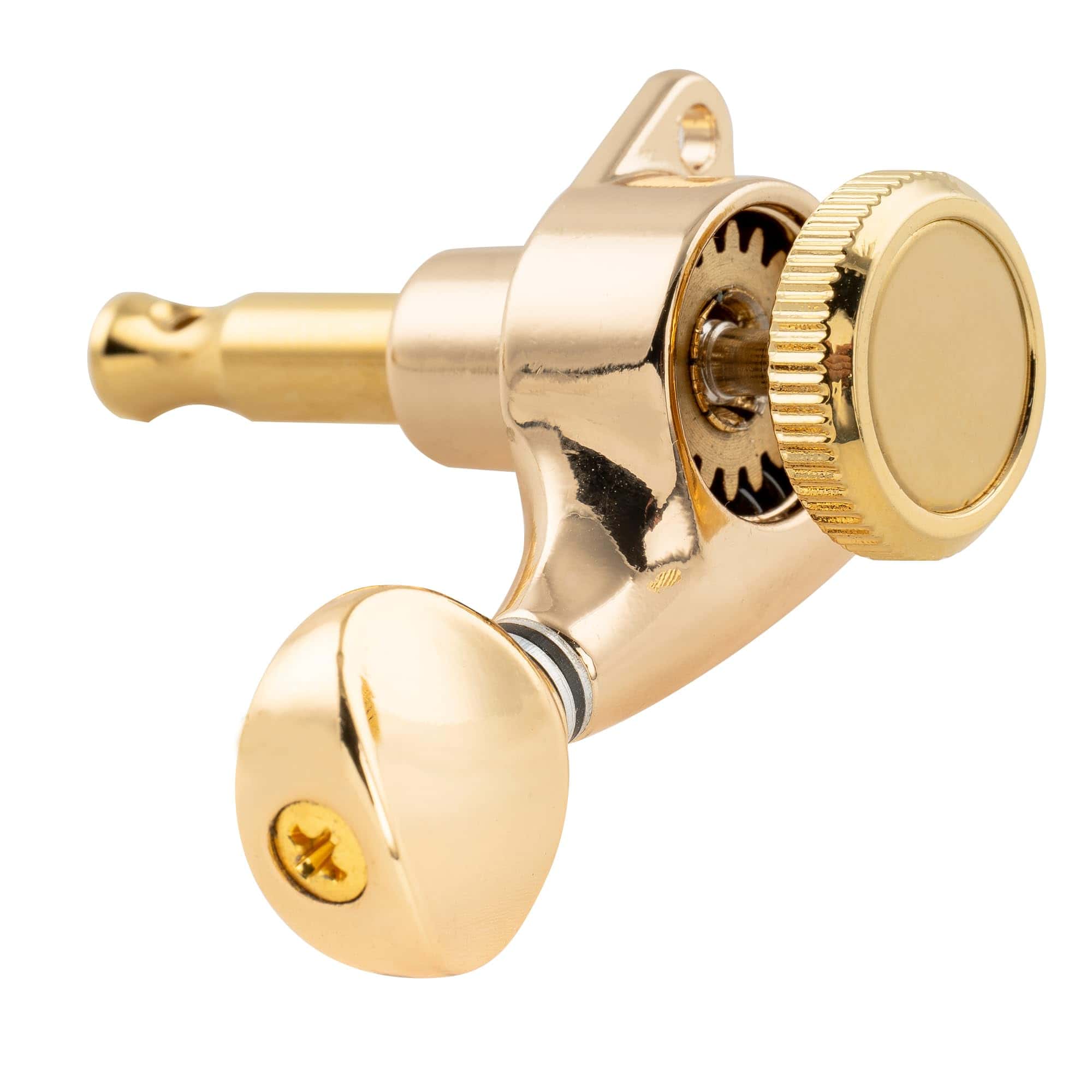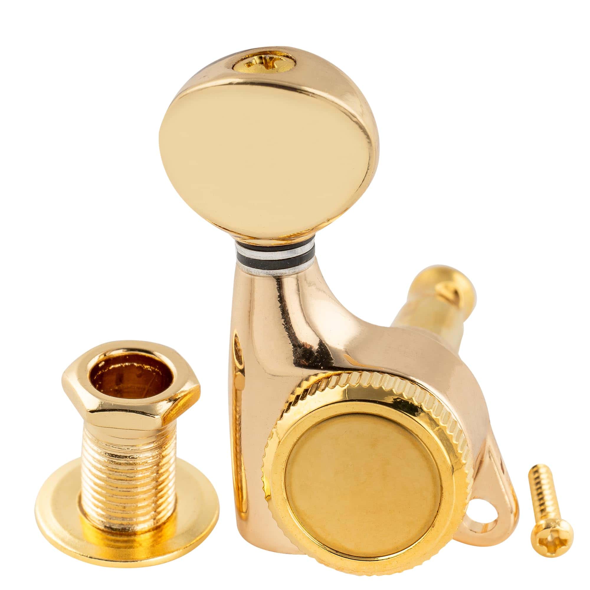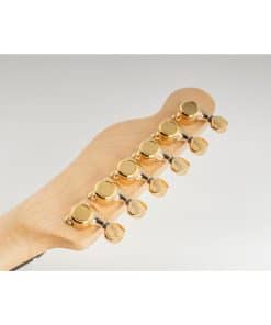Clavijas de Bloqueo Full Sealed Musiclily Pro 6 en Línea 18:1 para Guitarra Eléctrica Strat Tele con Botón Oval Vintage y Tornillo de 45 Grados, Doradas.