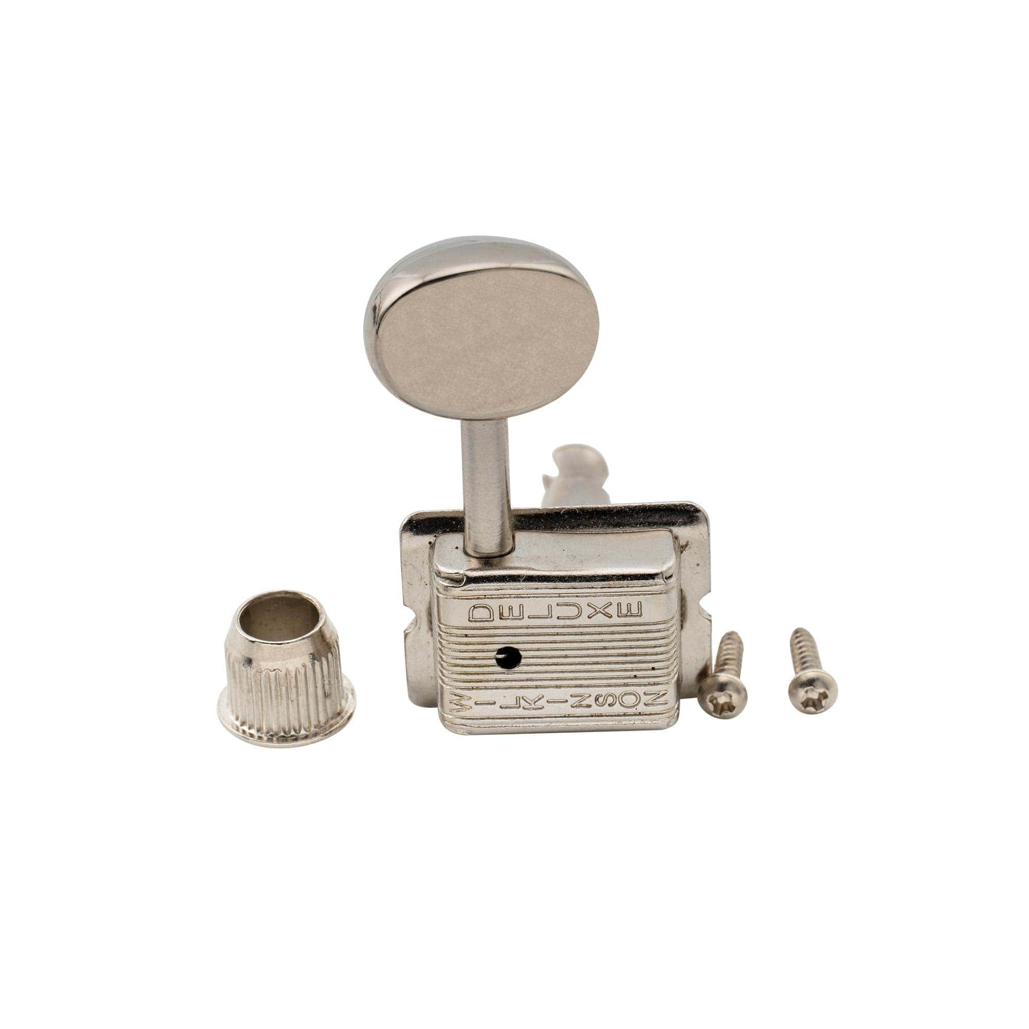 Clavijas Deluxe WJ55 Vintage 6 en línea para Guitarra Eléctrica estilo Classic Vibe Fender Strat/Tele, Niqueladas. Su poste dividido vintage y relación de engranaje de 15:1 aseguran una excelente precisión de ajuste. Fabricadas en metal completo, este juego de 6 clavijas incluye arandelas, casquillos y tornillos de montaje. Compatible con la mayoría de las guitarras estilo Fender/Squier Classic Vibe Strat/Tele o guitarras vintage similar al estilo F. Ajuste perfecto para agujeros de clavija de 9mm (11/32″) garantizando una afinación precisa.