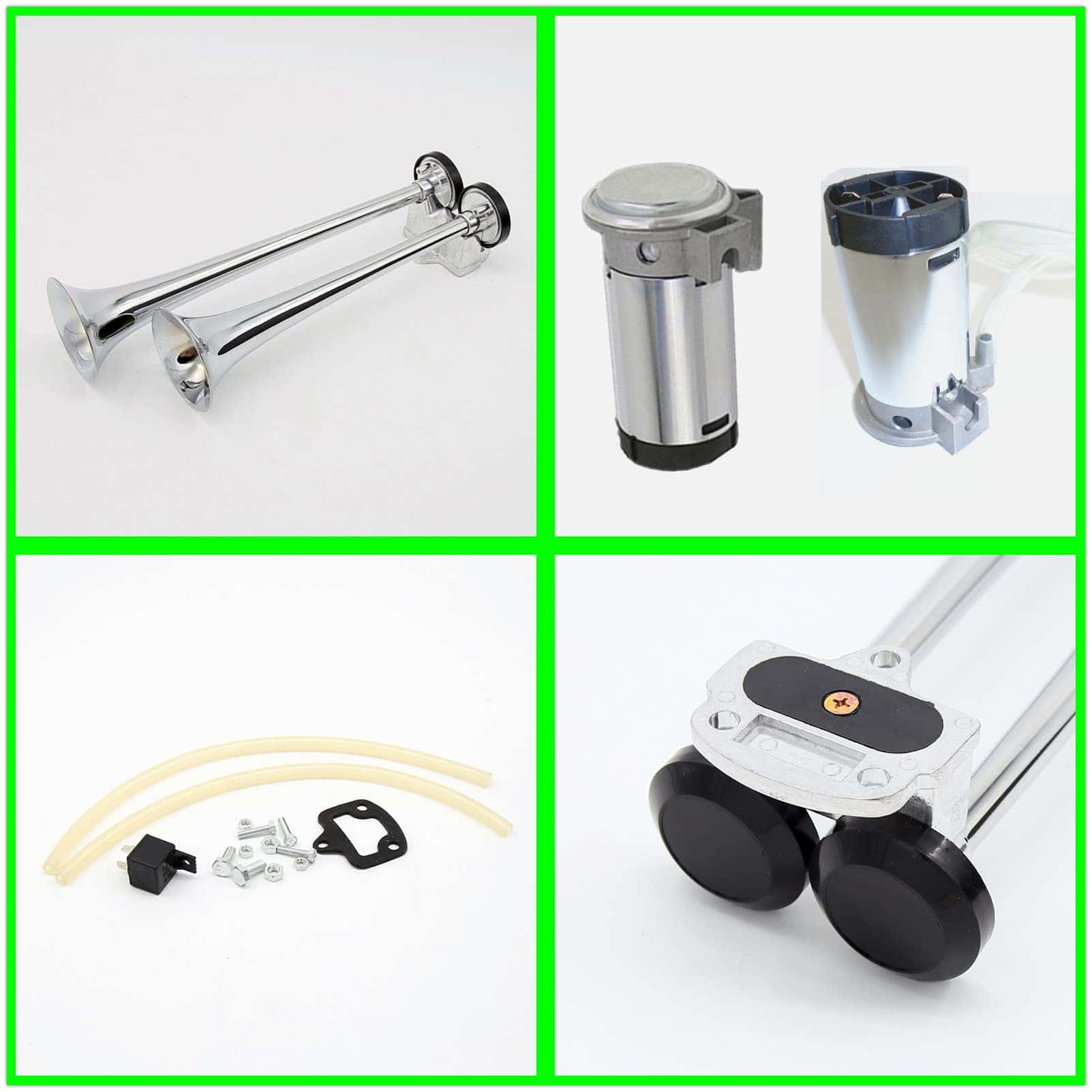 Adecuado para coches de 24V, camiones, furgonetas, barcos, RVs, etc. Fácil de instalar. No se requiere sistema de aire. Material: claxon doble de zinc cromado de alta calidad (antioxidante) Color: plata Voltaje: 24V Sonido: 165DB Peso (kg): 2.08 kg Paquete incluido: 1 X claxon de aire 2 X compresor 2 x manguera de aire 1 x set de hardware de instalación 1 relé 1 x zócalo de relé con cableado 1 X fusible 1 X fusible incorporado 1. El claxon de coche no requiere fuente de aire adicional. 2. Debido a la influencia de la fotografía y la luz, el color real puede ser ligeramente diferente al de la imagen; Debido a la medición manual, por favor permita una desviación de 1-3 cm. 3. Al instalar, asegúrese de que el claxon esté ligeramente inclinado hacia abajo para evitar que entre agua o suciedad en el claxon, afecte el efecto de sonido. Si necesitas otros claxones de coche, por favor busca en nuestra tienda en nuestro sitio web.