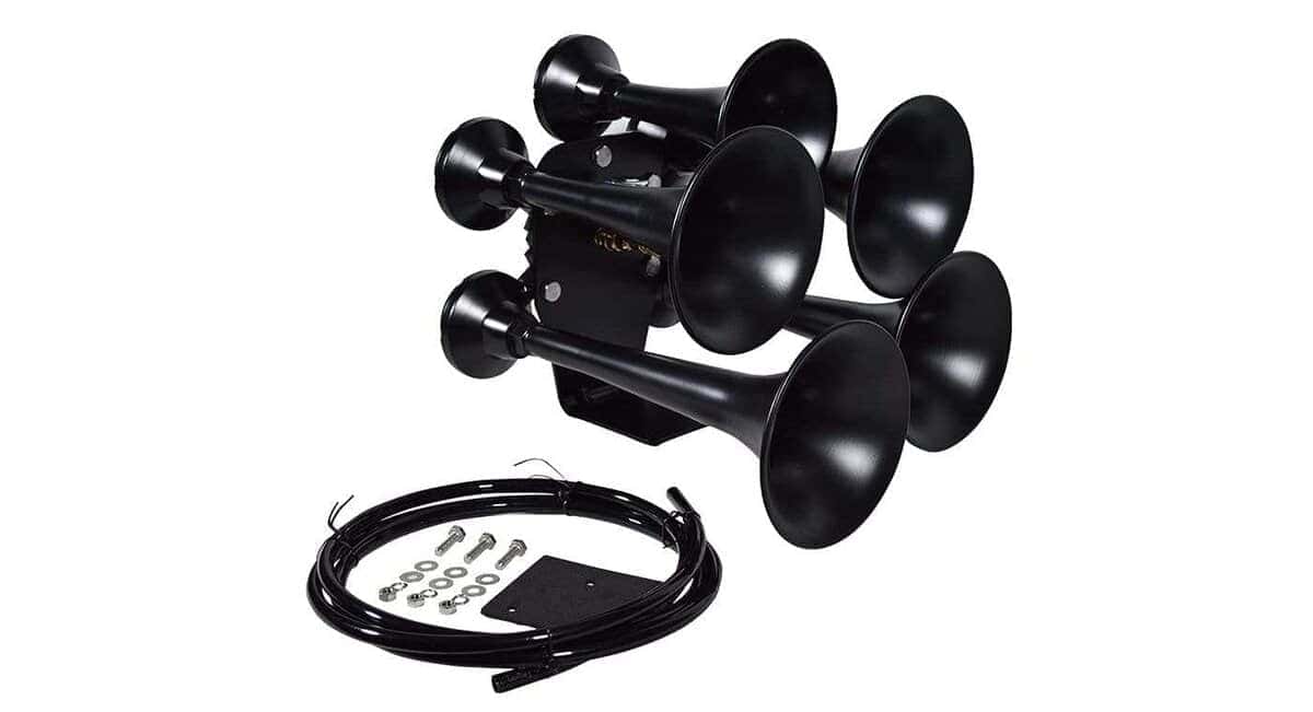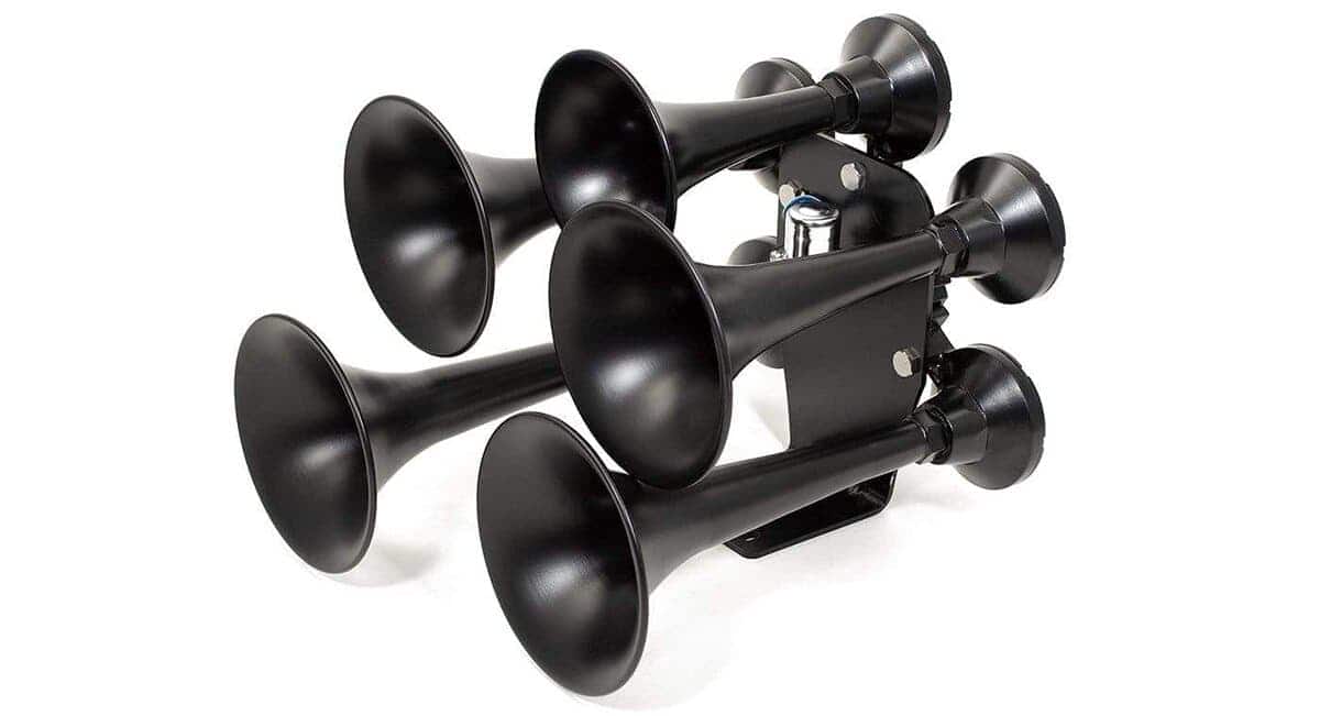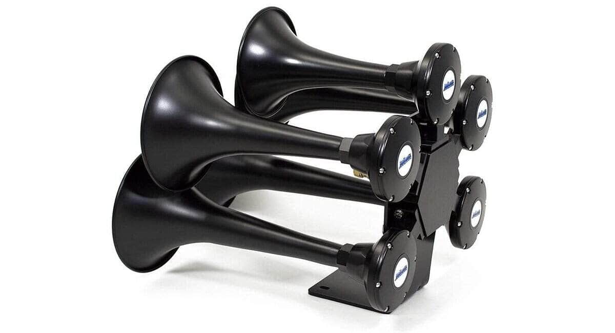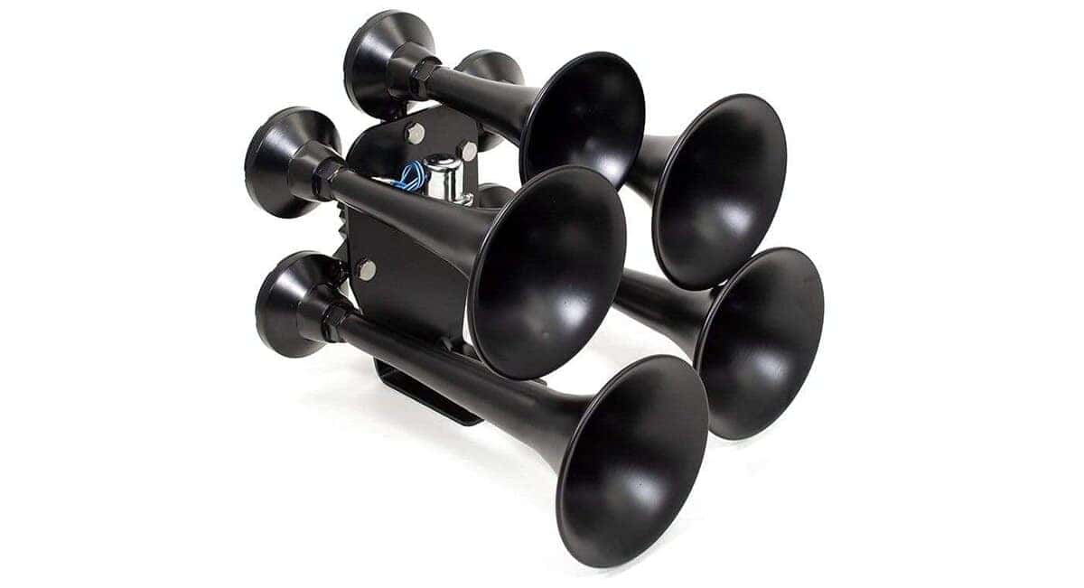 2. Diseño de Manifold – Todos los cinco trompetas se encuentran en un manifold especialmente diseñado. Este manifold dirige el aire desde la entrada a todas las 5 campanas. Este claxon ocupa una cantidad decente de espacio sin embargo es muy fácil de instalar.