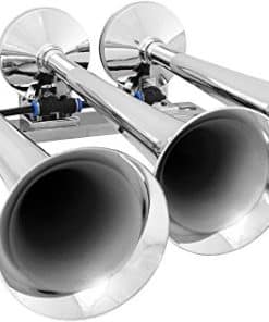 1. SÚPER RUIDOSO CLAXON DE TREN DE 3 TROMPETAS: Cada trompeta ha sido afinada para producir sonidos a diferentes frecuencias, al combinar los sonidos tendrás el reconocido sonido del claxon de tren con un tono profundo y completo, capaz de captar inmediatamente la atención de todos mientras se asegura de que los conductores distraídos sean conscientes de tu presencia. Consulta las imágenes para ver un video de muestra del sonido. 2. CONSTRUCCIÓN DE METAL: Las trompetas están hechas con una aleación de zinc de calidad premium que ha sido cromada para una capa adicional de protección, lo suficientemente resistente para soportar cualquier condición climática. 3. SOLENOIDE DE RESPUESTA RÁPIDA DE 12V: Una válvula de aire resistente que permitirá que el aire entre en el claxon cuando se electrifique. Esta válvula viene con un accesorio de compresión para conectar la manguera de aire incluida, un tipo de accesorio más eficiente para mantener la manguera de aire a altas presiones de aire. 4. FÁCIL DE INSTALAR: El claxon se puede instalar fácilmente en tu vehículo y en tu sistema de aire existente con el hardware de montaje completo incluido, una duradera manguera de nylon de 6 pies e instrucciones claras. Se requiere un sistema de aire a bordo (tanque de aire y compresor) para operar, NO INCLUIDO. 5. CALIDAD PREMIUM Y LA MEJOR RELACIÓN CALIDAD-PRECIO: Este claxon fue diseñado para garantizar que dure muchos años con uso diario. Se proporciona una garantía de 1 año para todas sus partes. Nos esforzamos por mantenerlo asequible en comparación con la calidad excepcional.