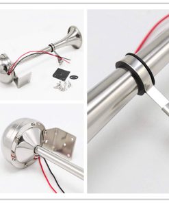 Claxon nuevo. Trompetas de acero inoxidable 304, muy ruidoso. Incluye hardware de montaje. Fácil de instalar. No se necesita sistema de aire. Especificaciones: Para: Vehículos de 12V como automóviles, camiones, furgonetas, autobuses, RV, SUV, Jeep y barcos. Material: Doble altavoz de acero inoxidable. Voltaje: 12V. Volumen: 165db. Paquete incluye: 1 X Bocina, 1 X Set de Hardware de Montaje, 1 X Relé, 1 X Enchufe de Relé con Cable, 1 X Cable de Alimentación de 1.5 metros