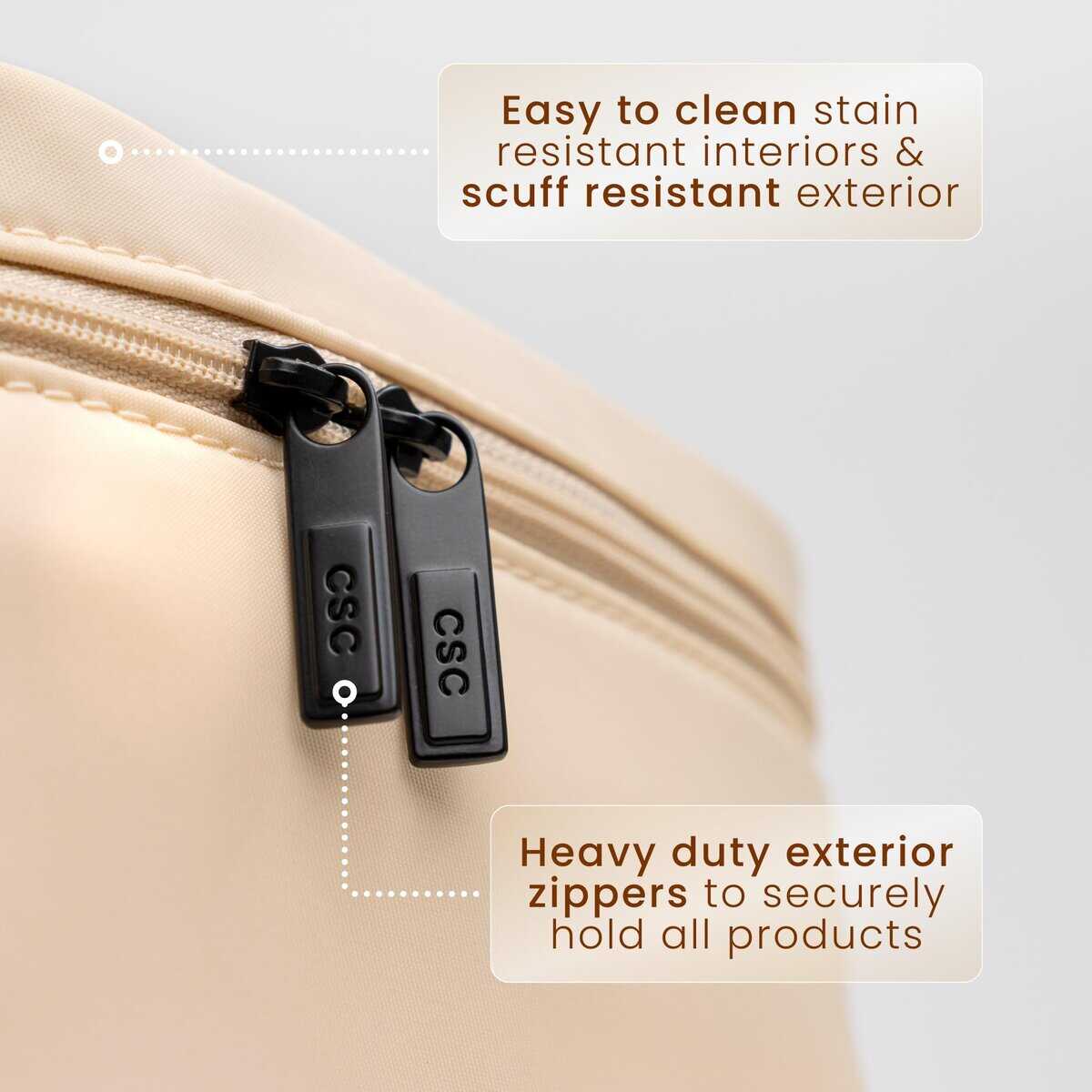 4. Cremalleras exteriores resistentes para sostener de forma segura todos los productos